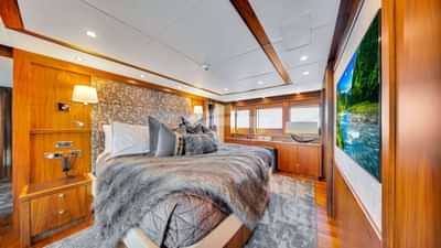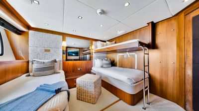 ゲストキャビンには、キングサイズベッド1台と専用バスルーム付きのプライマリースイート、クイーンサイズベッド1台と専用バスルーム付きのキャビン3室、シングルベッド1台と専用バスルーム付きのキャビン、ツインベッド1台とプルマンベッド付きのキャビンがあります。