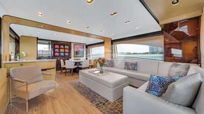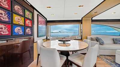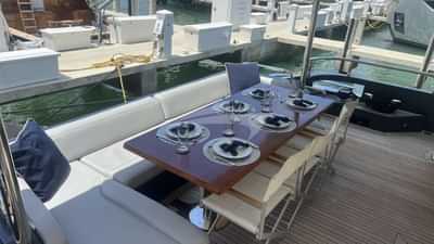 チャーターゲスト用の機内アメニティには、エアコン、バーベキュー、屋外シャワー、屋内オーディオシステム、デッキのジャグジー、衛星テレビ、アンカー付きスタビライザー、スイムプラットフォーム、テレビサルーン、Wi-Fiが含まれます。