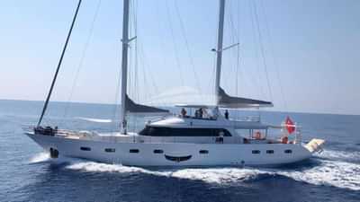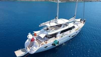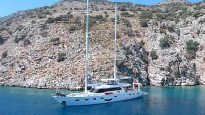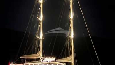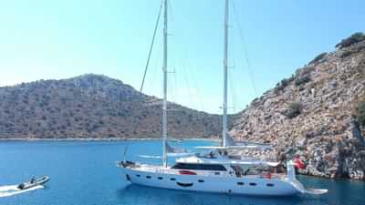 ヨットANGELO IIIでの豪華チャーターは、船長を含む5人の乗組員が管理します。