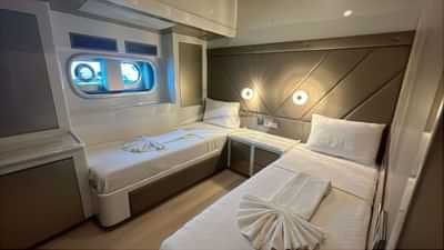 ゲストキャビンは、クイーンサイズベッド付きのプライマリースイート、クイーンサイズベッド付きの2つのキャビン、ダブルベッド付きのキャビン、ツインベッド付きのキャビンで構成されています。