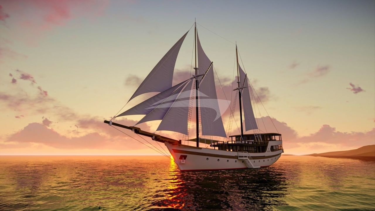 157フィート/48mのSAMARA OTIUMは木製の船体で造られており、ヤンマー600馬力を動力源としており、巡航速度は9ノット、最高速度は12ノットです。