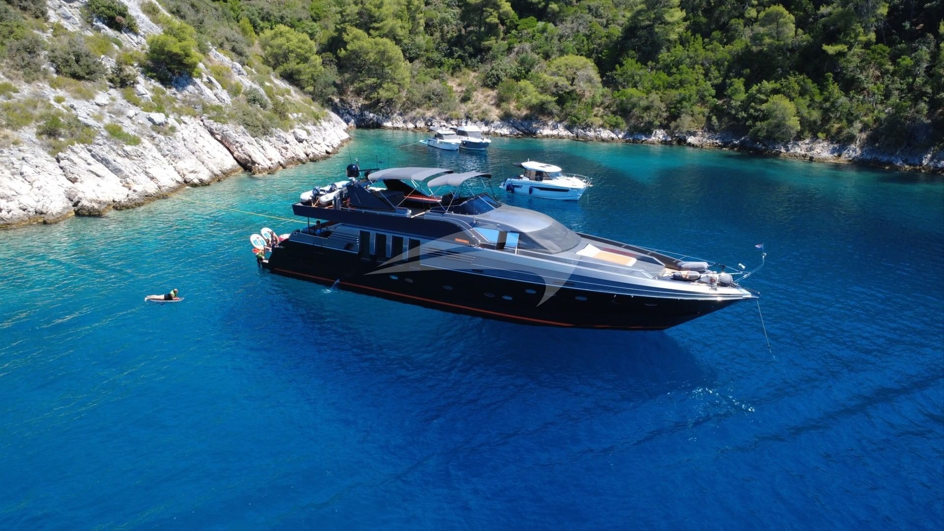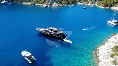 モーターヨット「マーシャル」での豪華チャーターは、船長を含む3人のクルーが管理します。