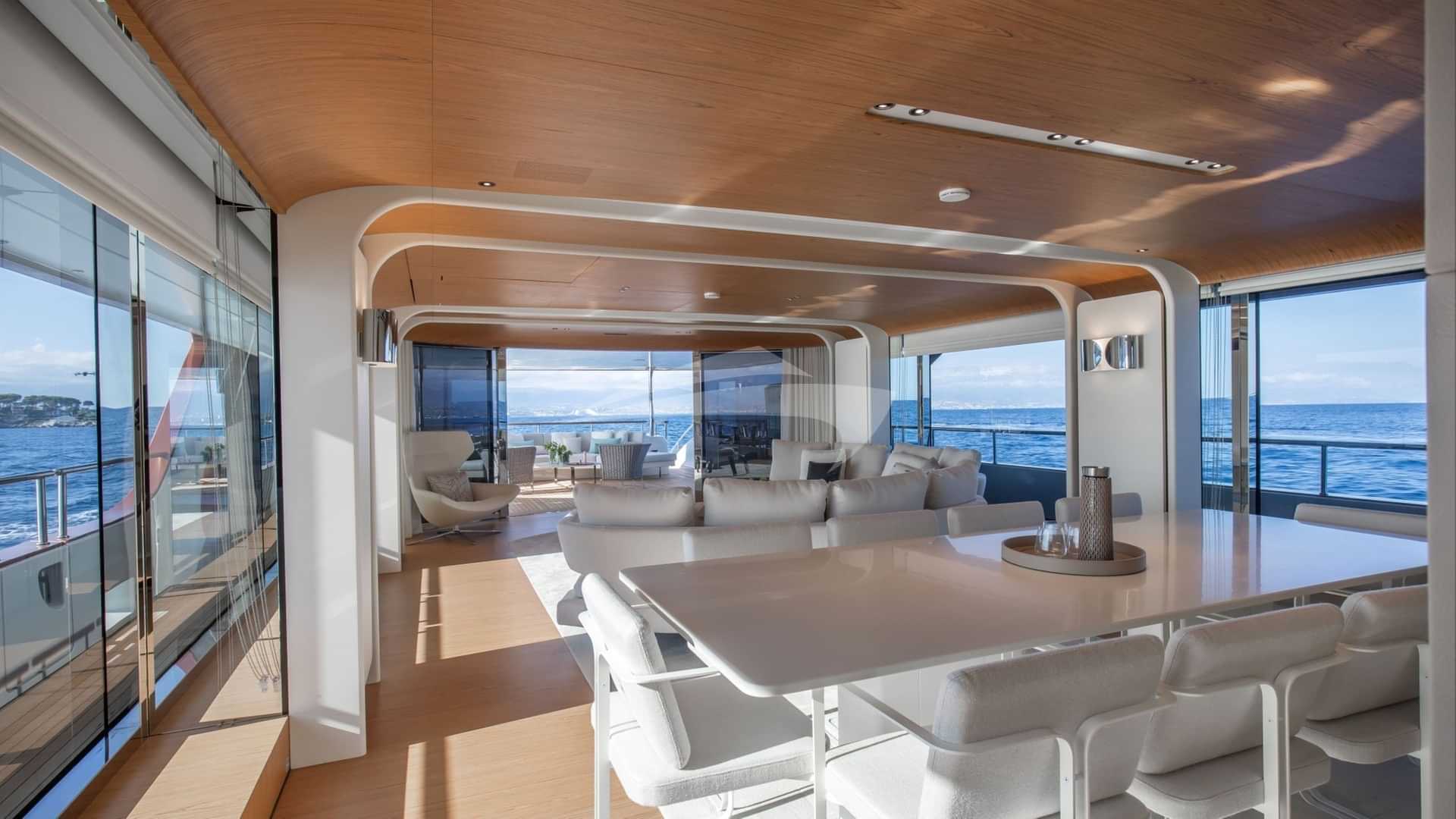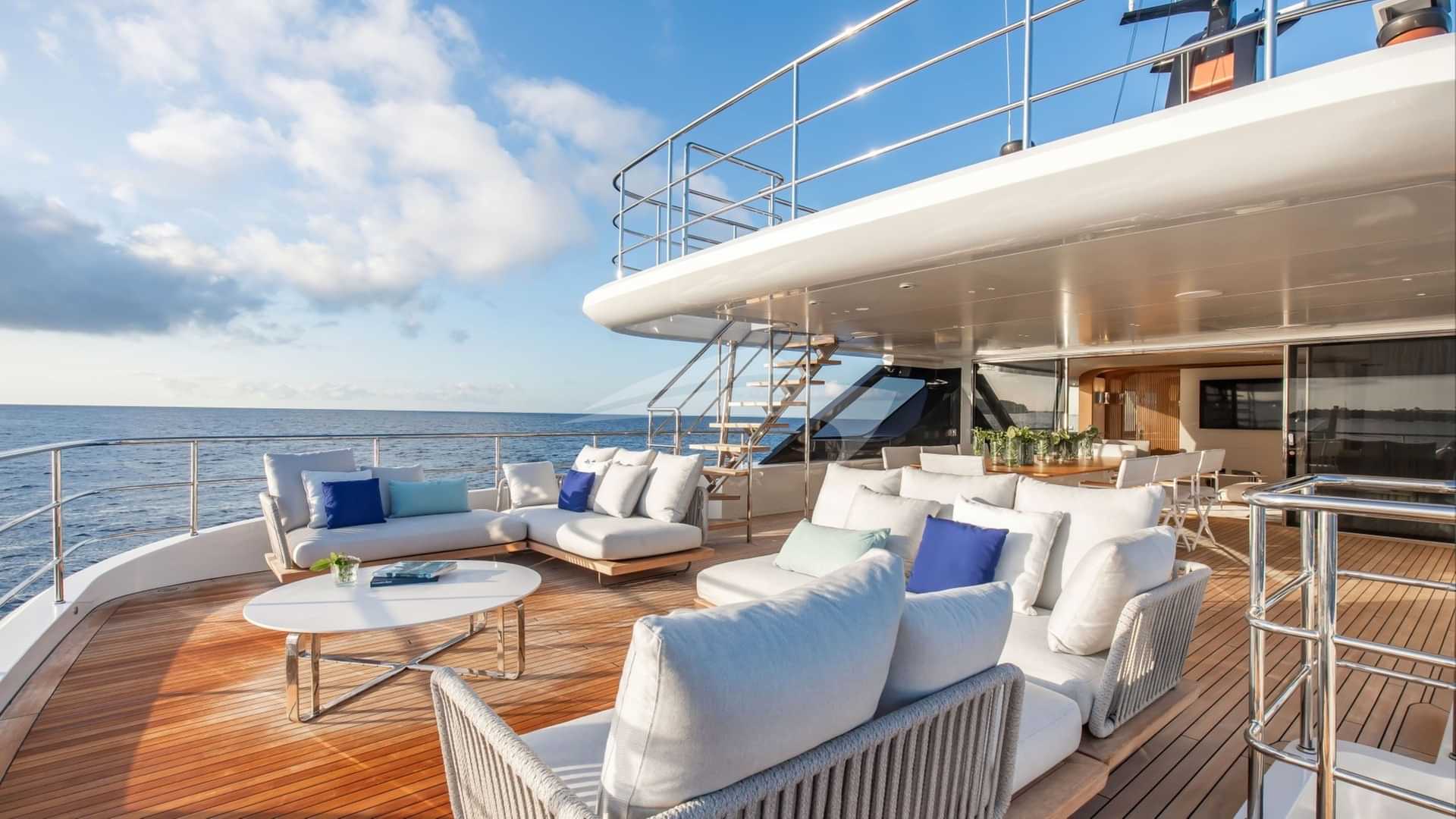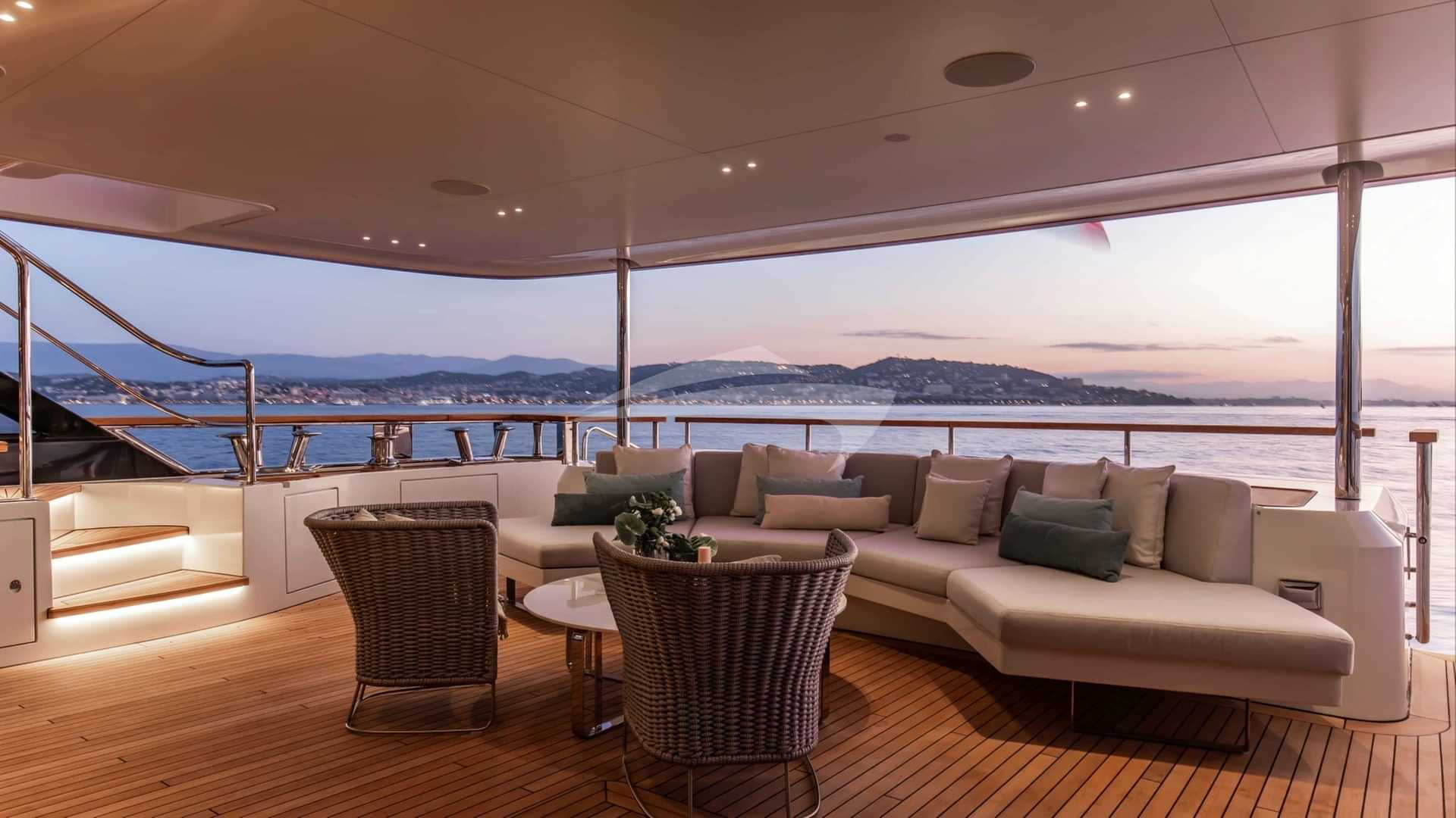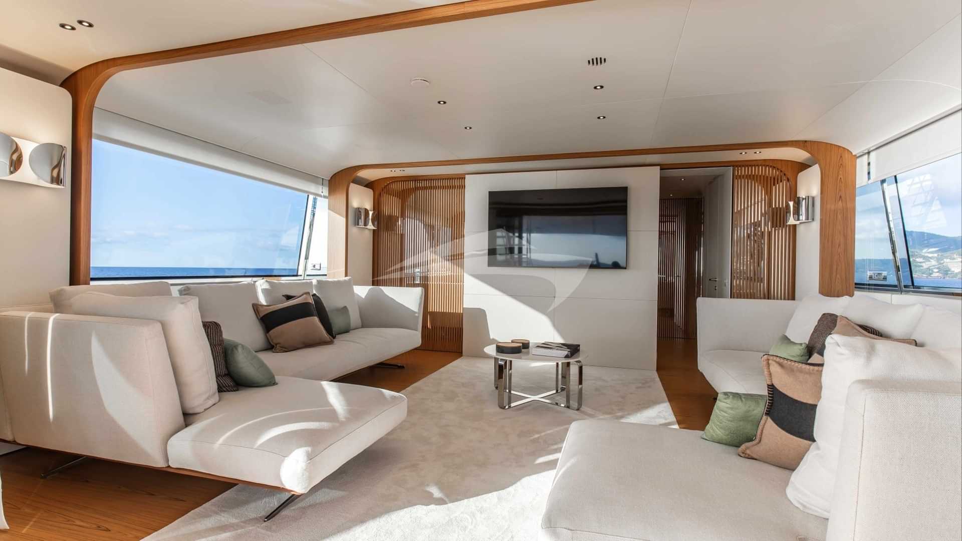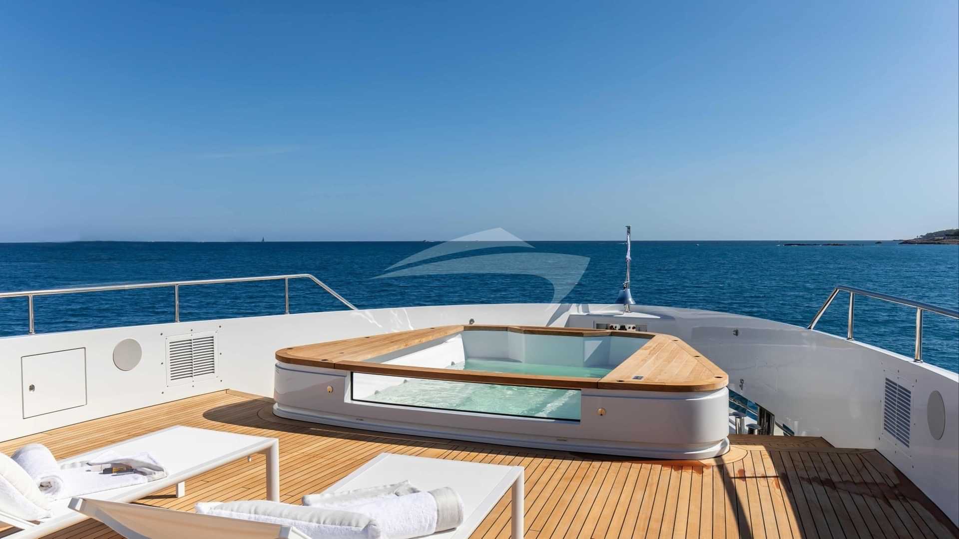 チャーターゲスト用の機内アメニティには、エアコン、デッキ上のジャグジー、屋外バー、衛星テレビ、アンカー付きスタビライザー、サンパッド、サンデッキ、スイムプラットフォーム、テレビサルーン、Wi-Fiが含まれます。