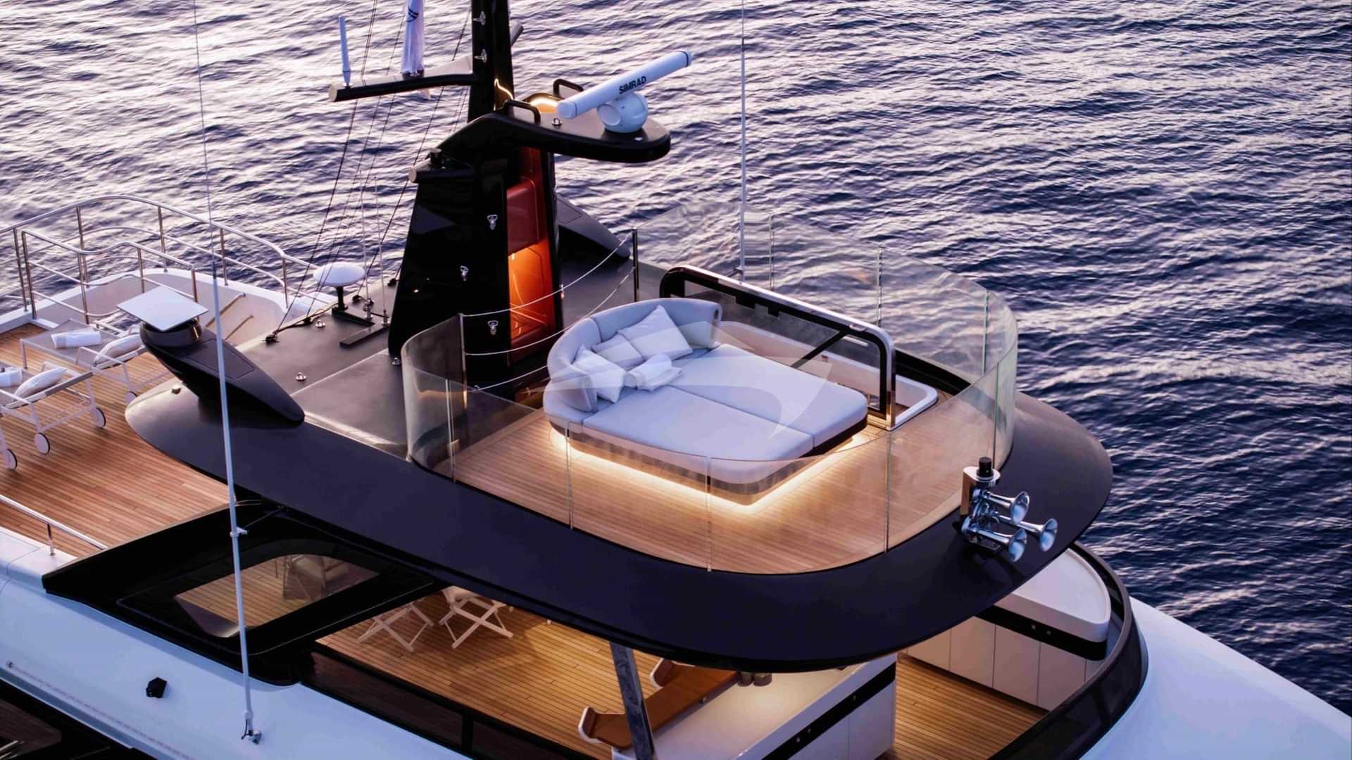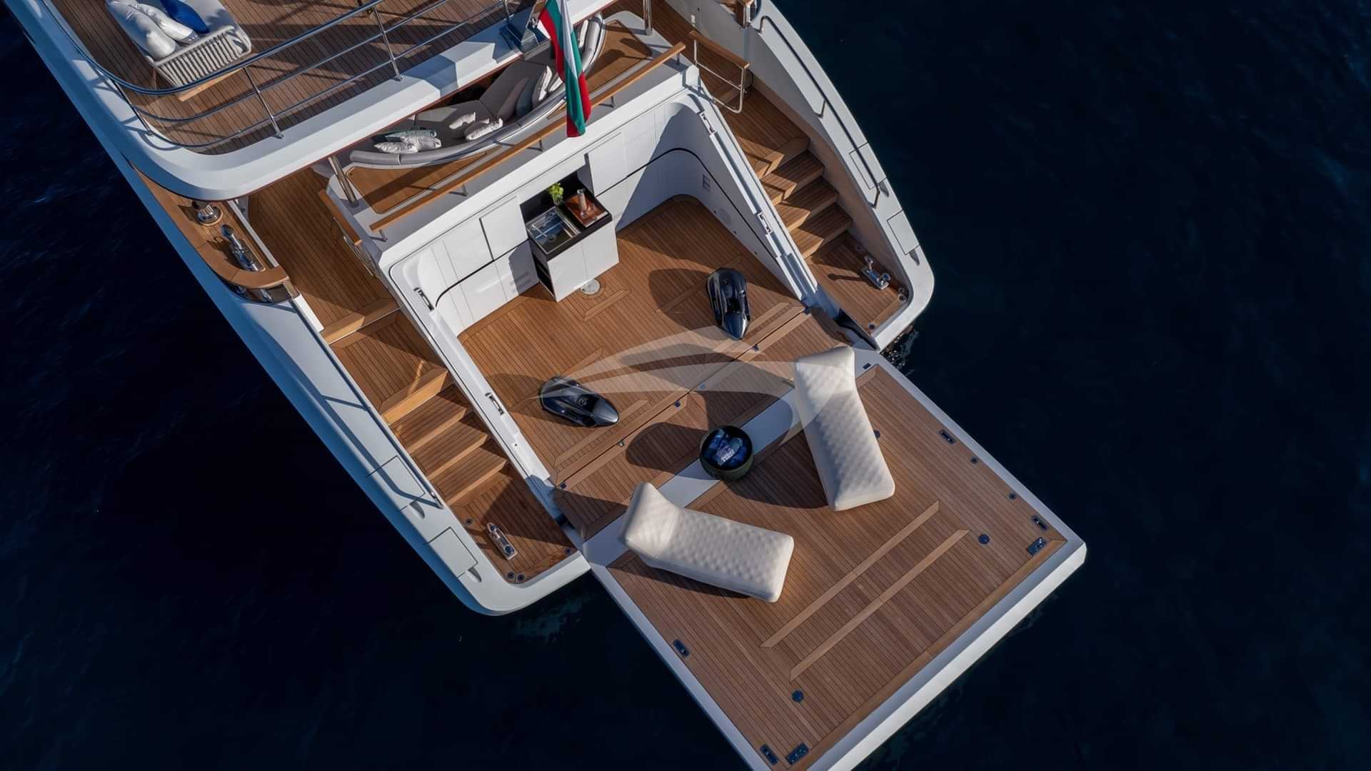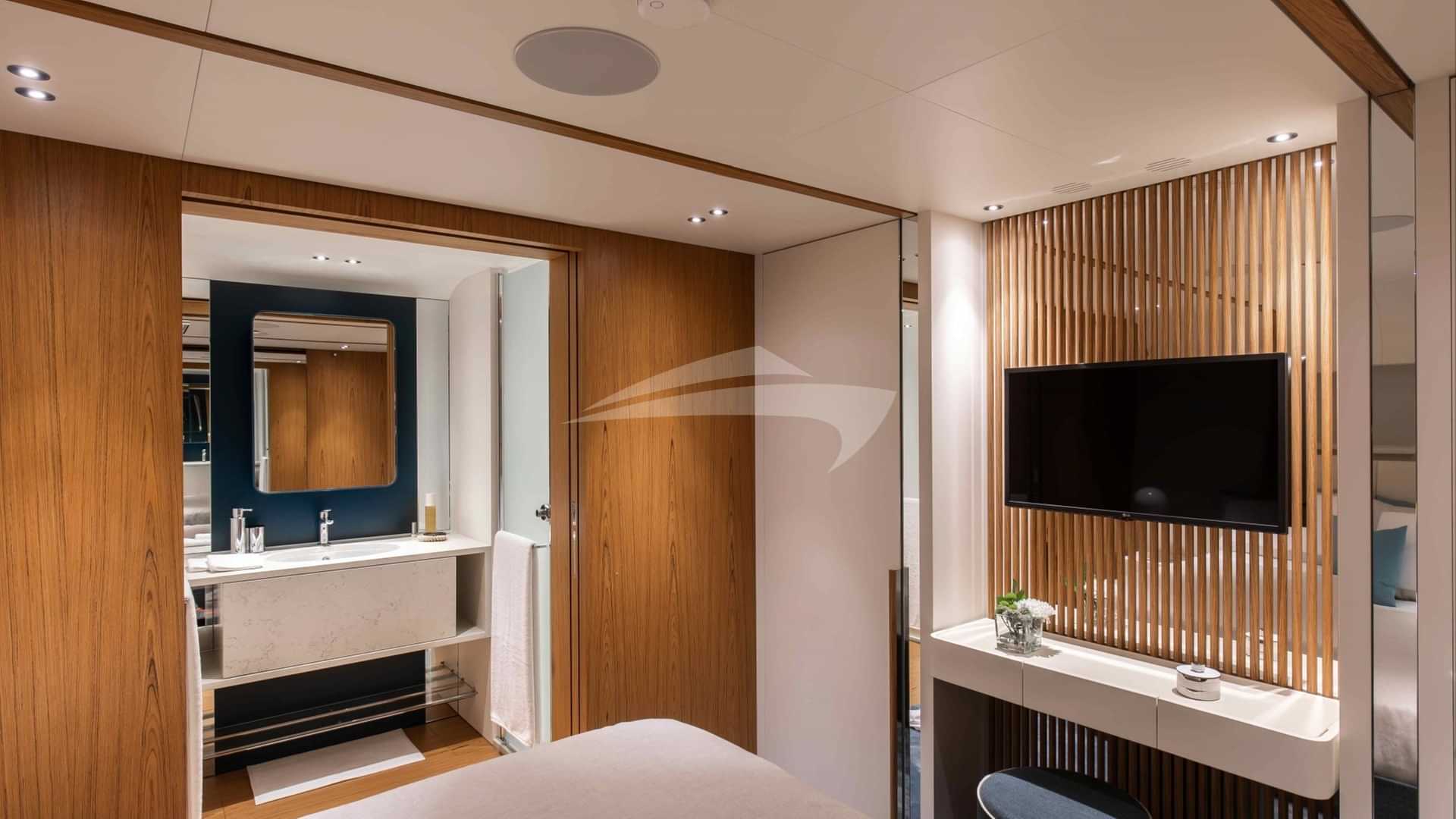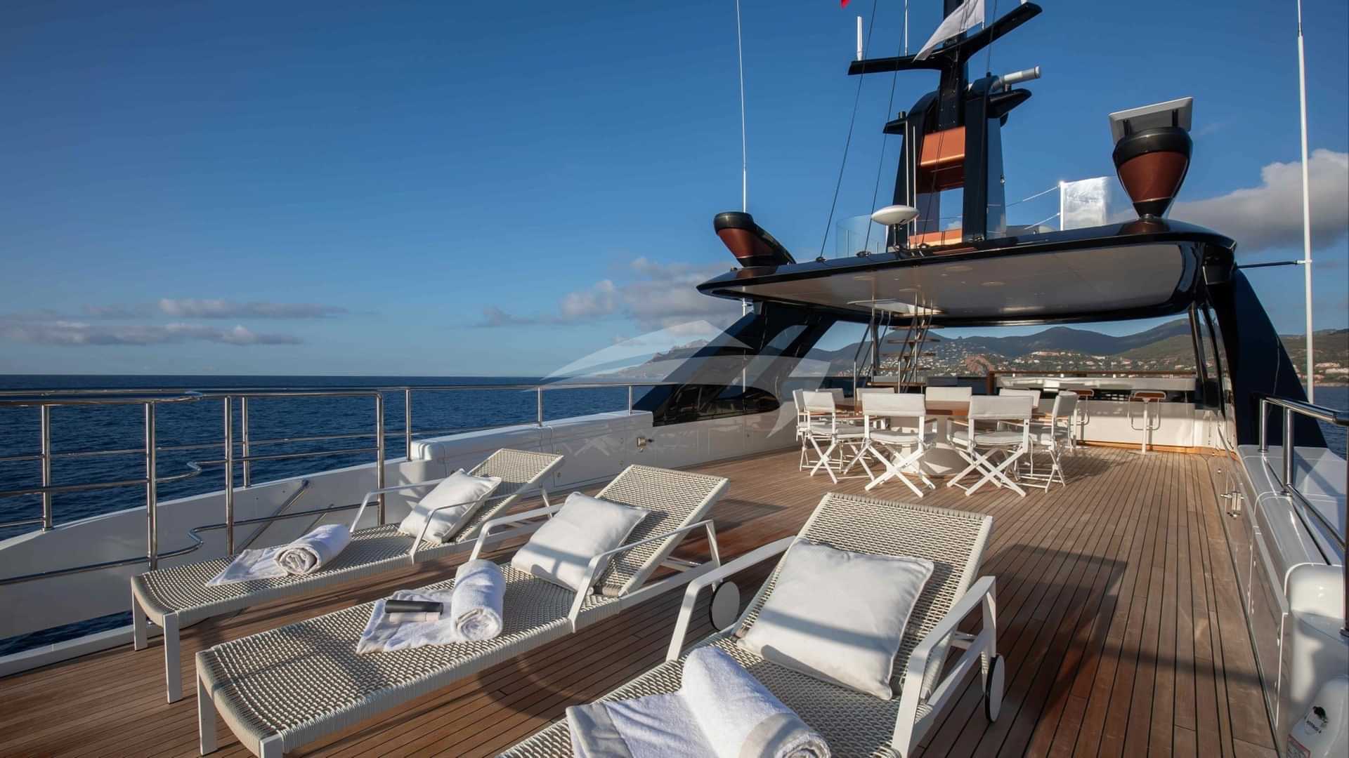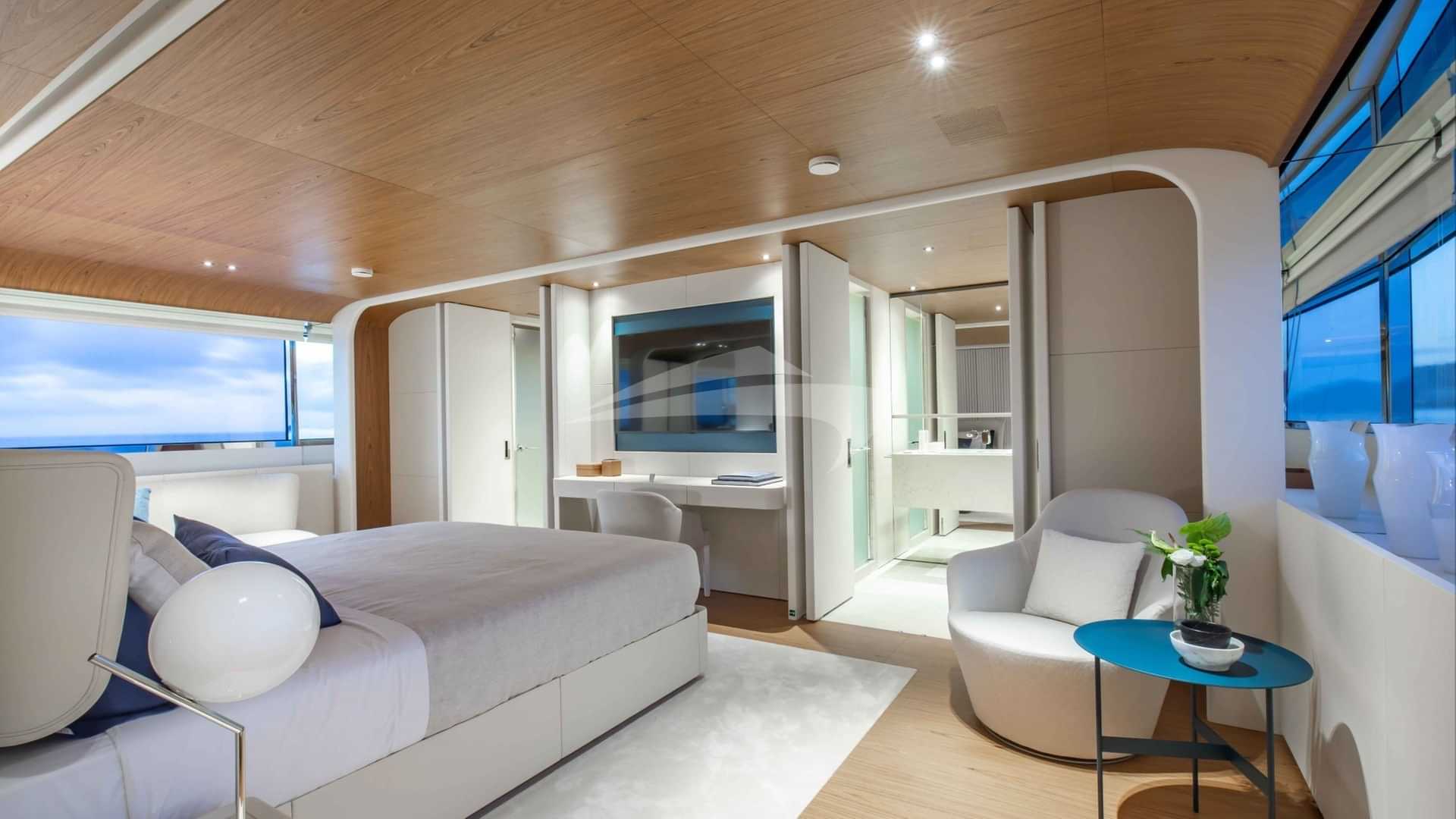 チャーターゲスト用の機内アメニティには、エアコン、デッキ上のジャグジー、屋外バー、衛星テレビ、アンカー付きスタビライザー、サンパッド、サンデッキ、スイムプラットフォーム、テレビサルーン、Wi-Fiが含まれます。