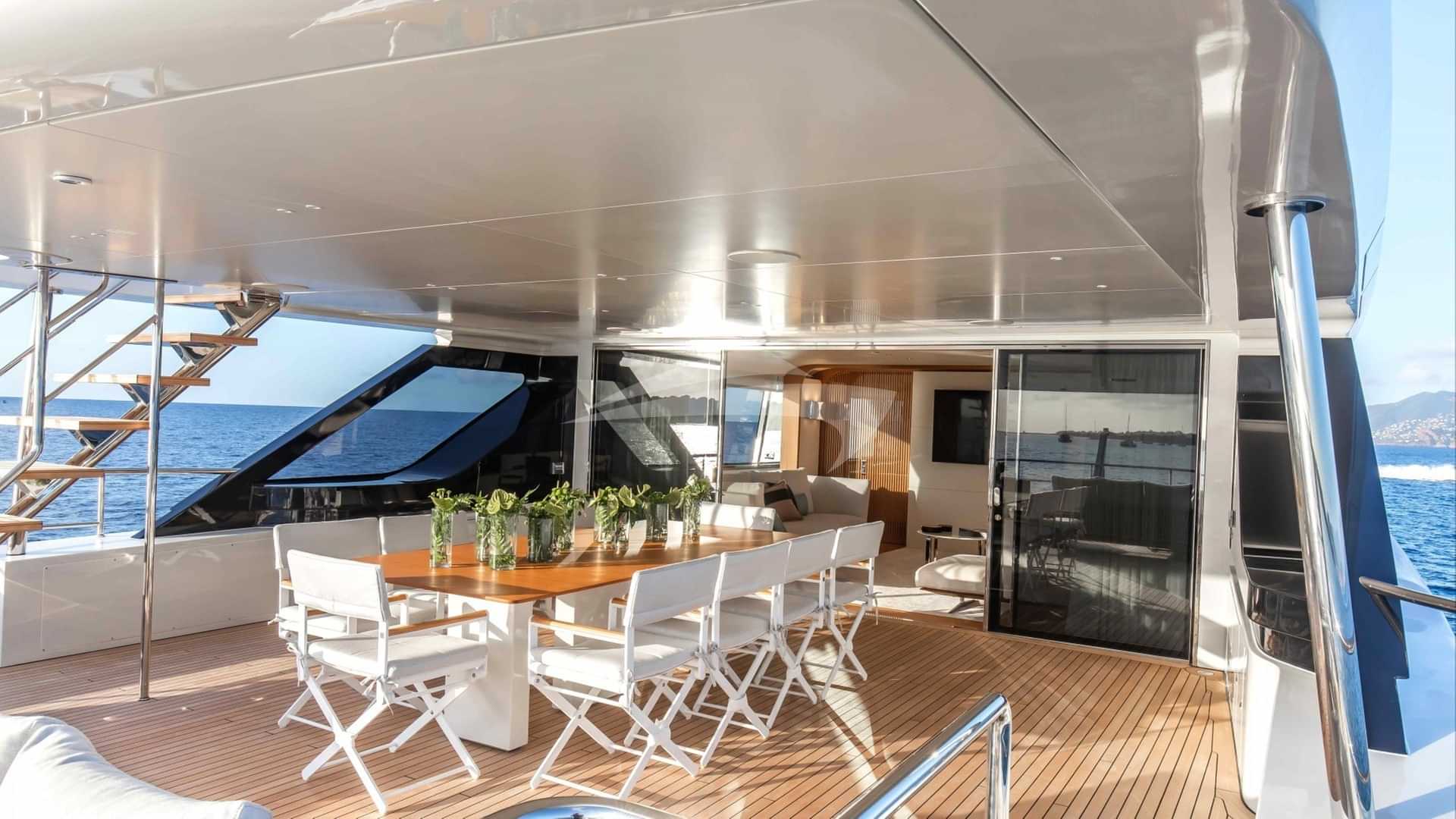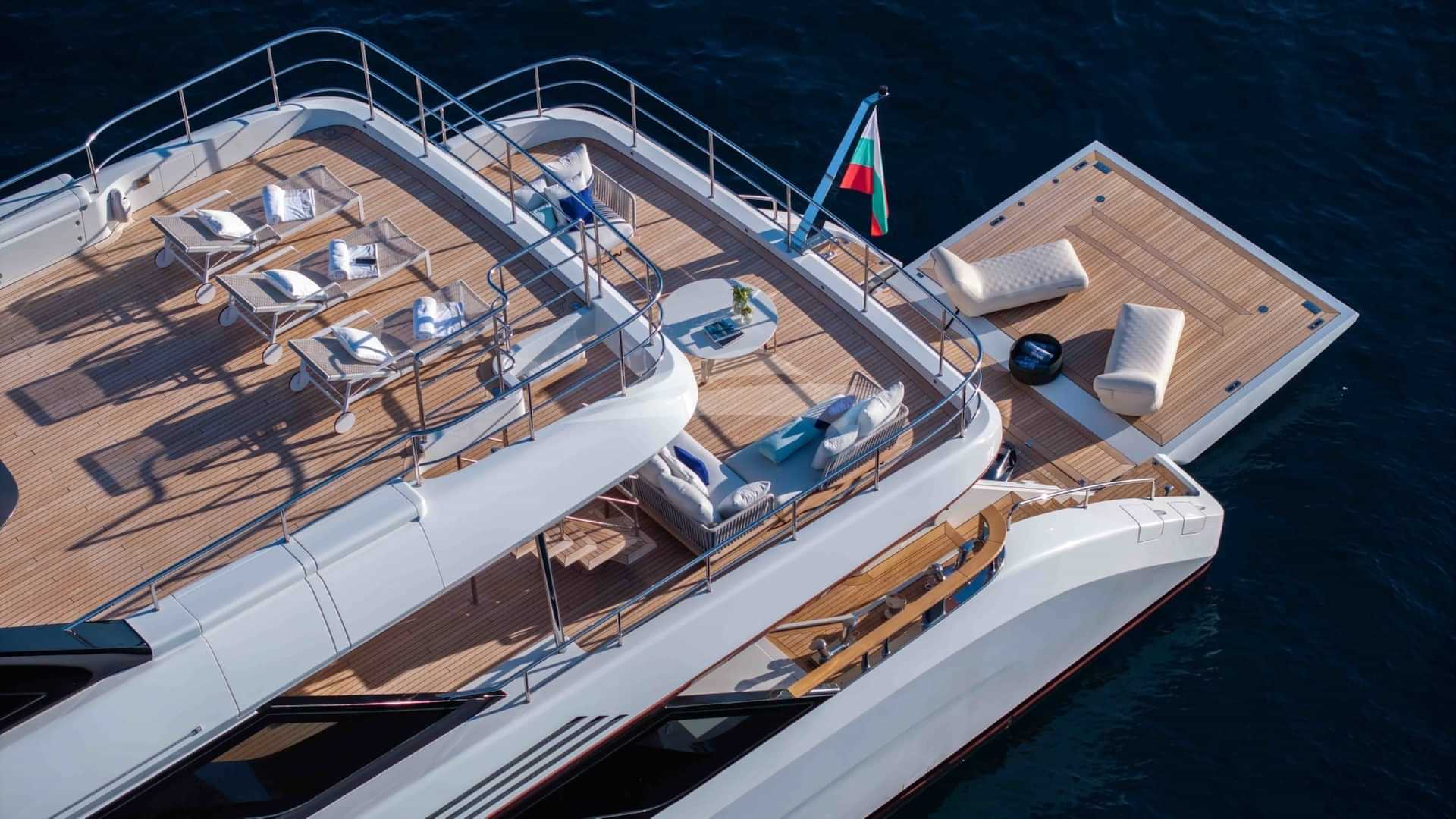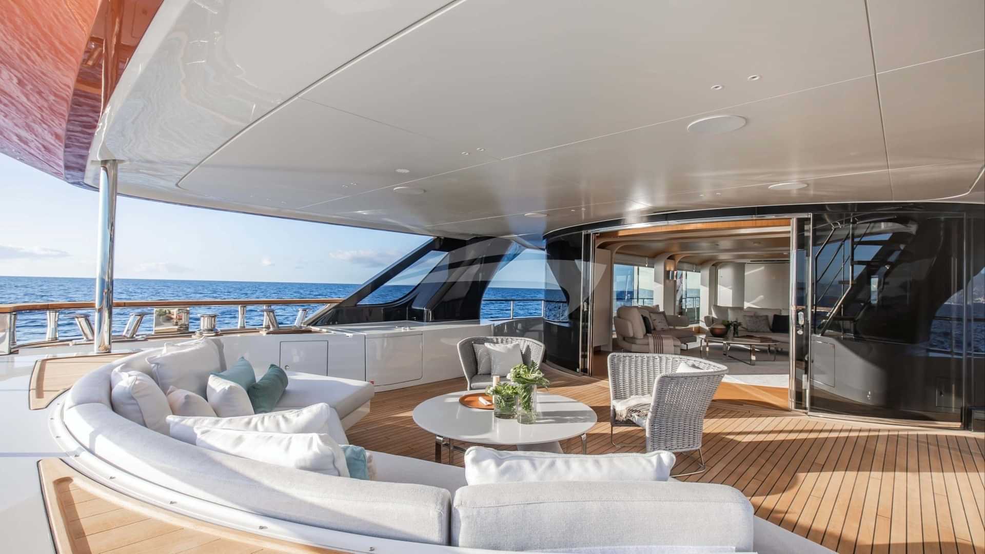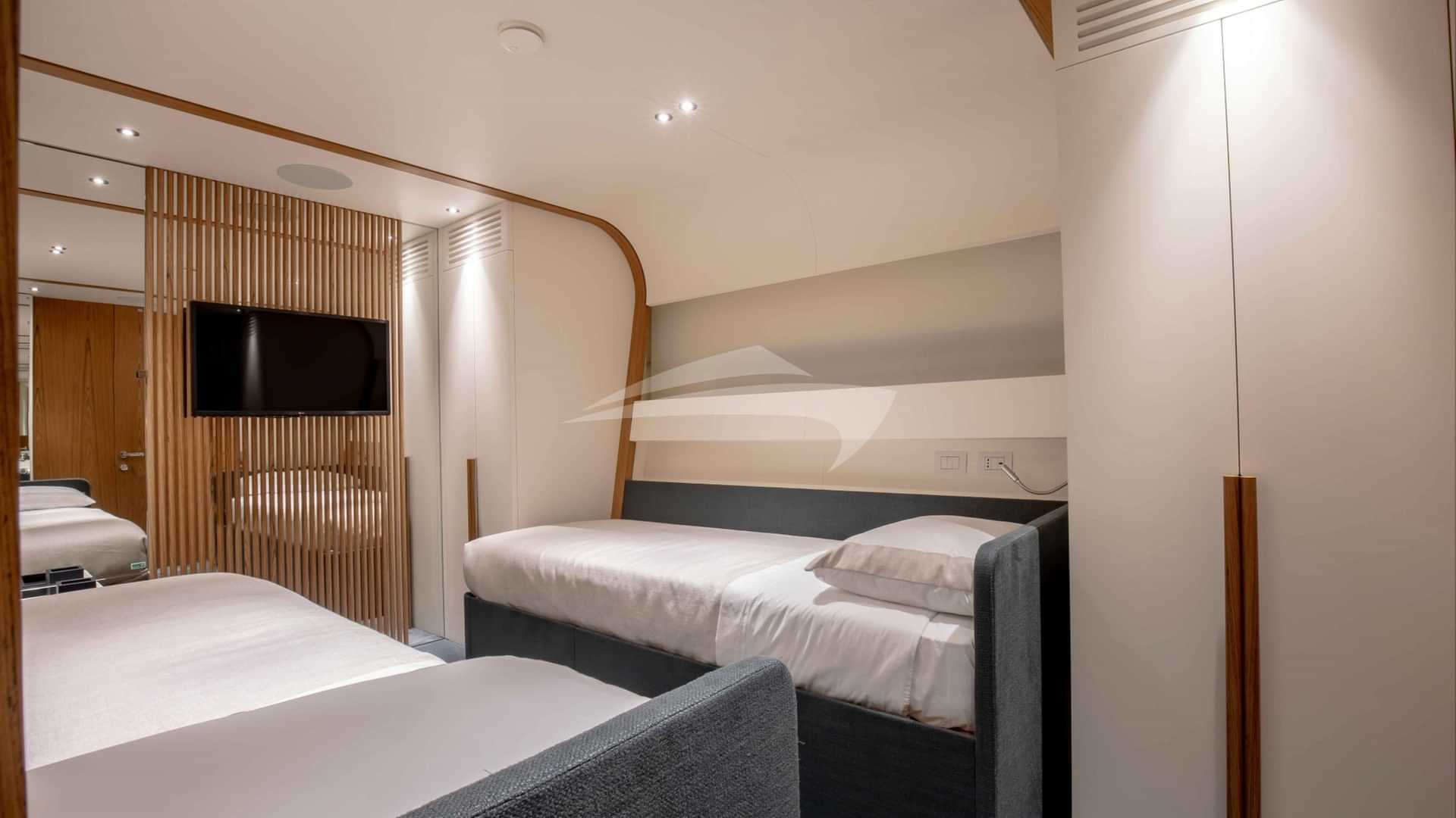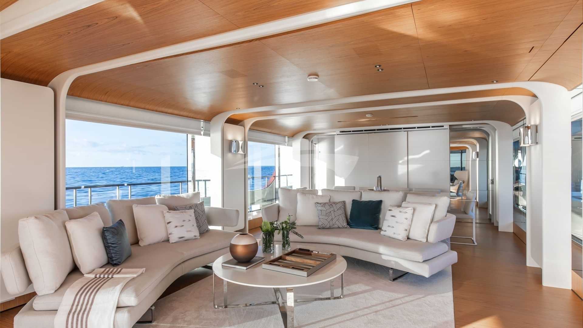 チャーターゲスト用の機内アメニティには、エアコン、デッキ上のジャグジー、屋外バー、衛星テレビ、アンカー付きスタビライザー、サンパッド、サンデッキ、スイムプラットフォーム、テレビサルーン、Wi-Fiが含まれます。