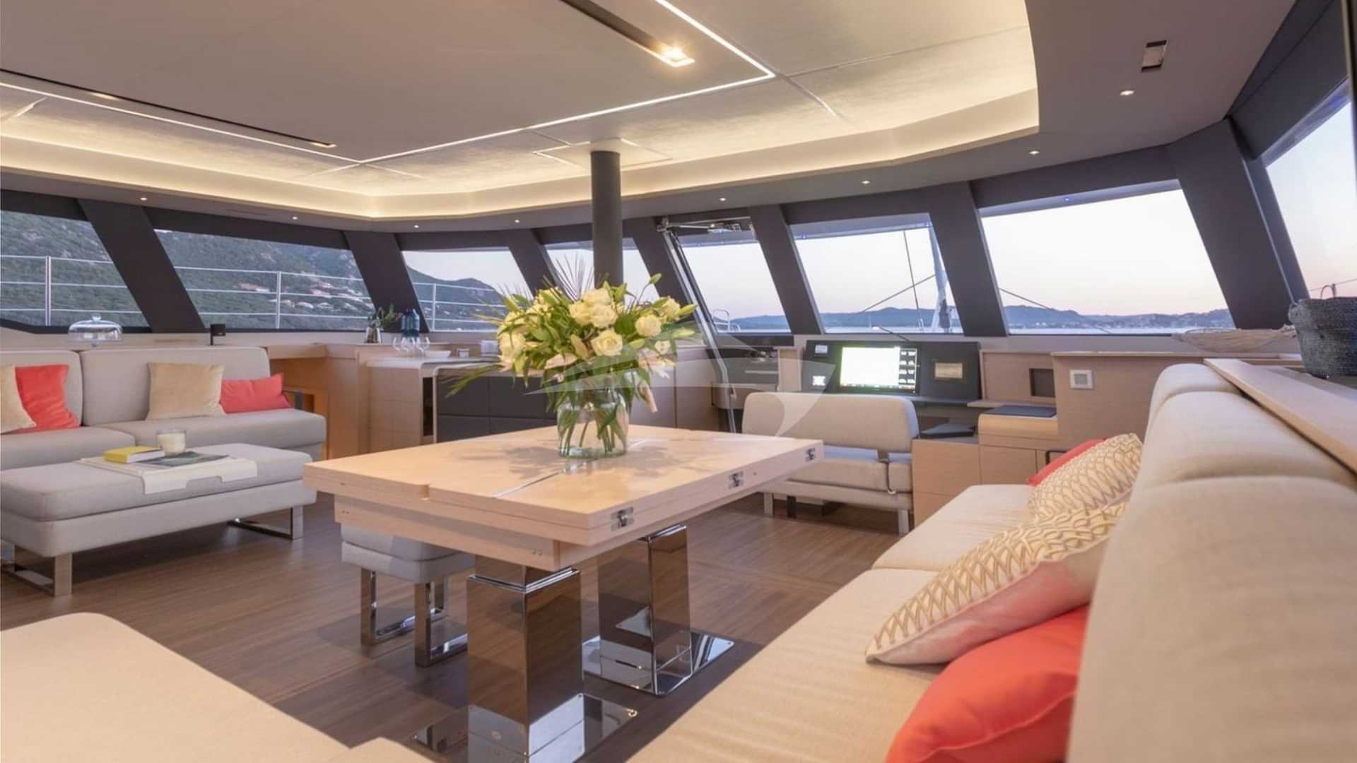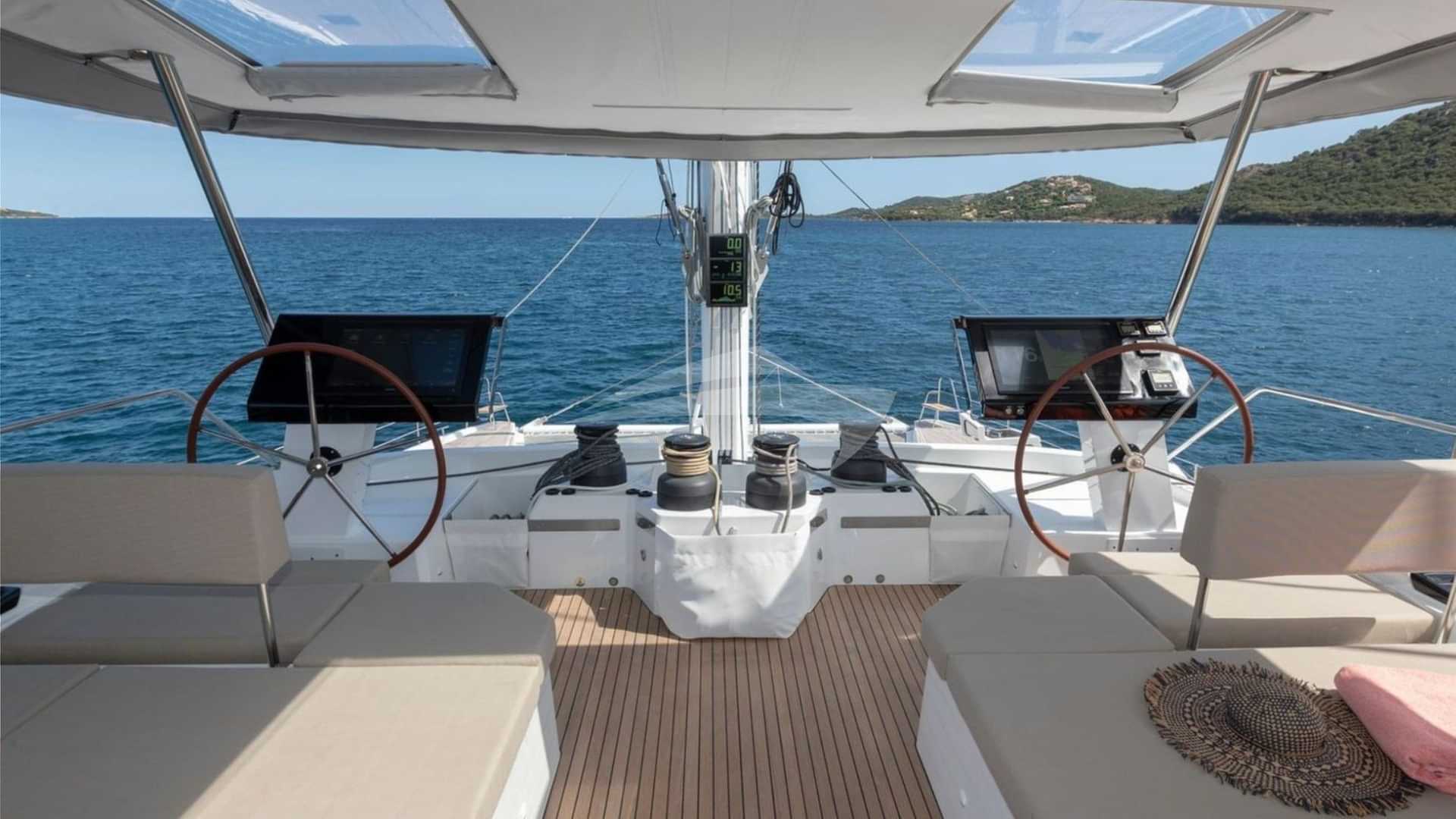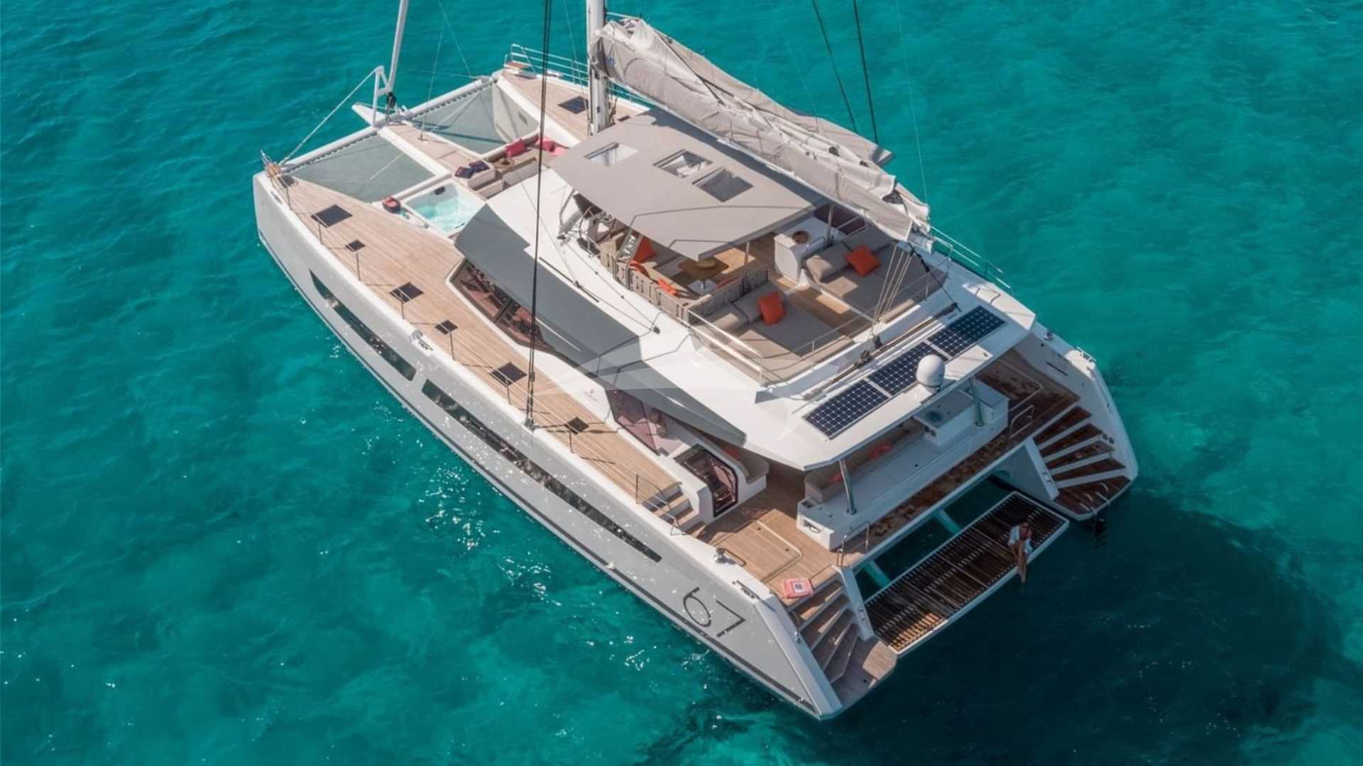 Aerial ViewAerial ViewAft Deck DiningAft Deck DiningInteriorInteriorGalleyDouble Cabin 1ADouble Cain 1BGuest BathroomDouble Cabin 2Deck SeatingDeck SeatingCockpitForedeckDeck Jacuzzi