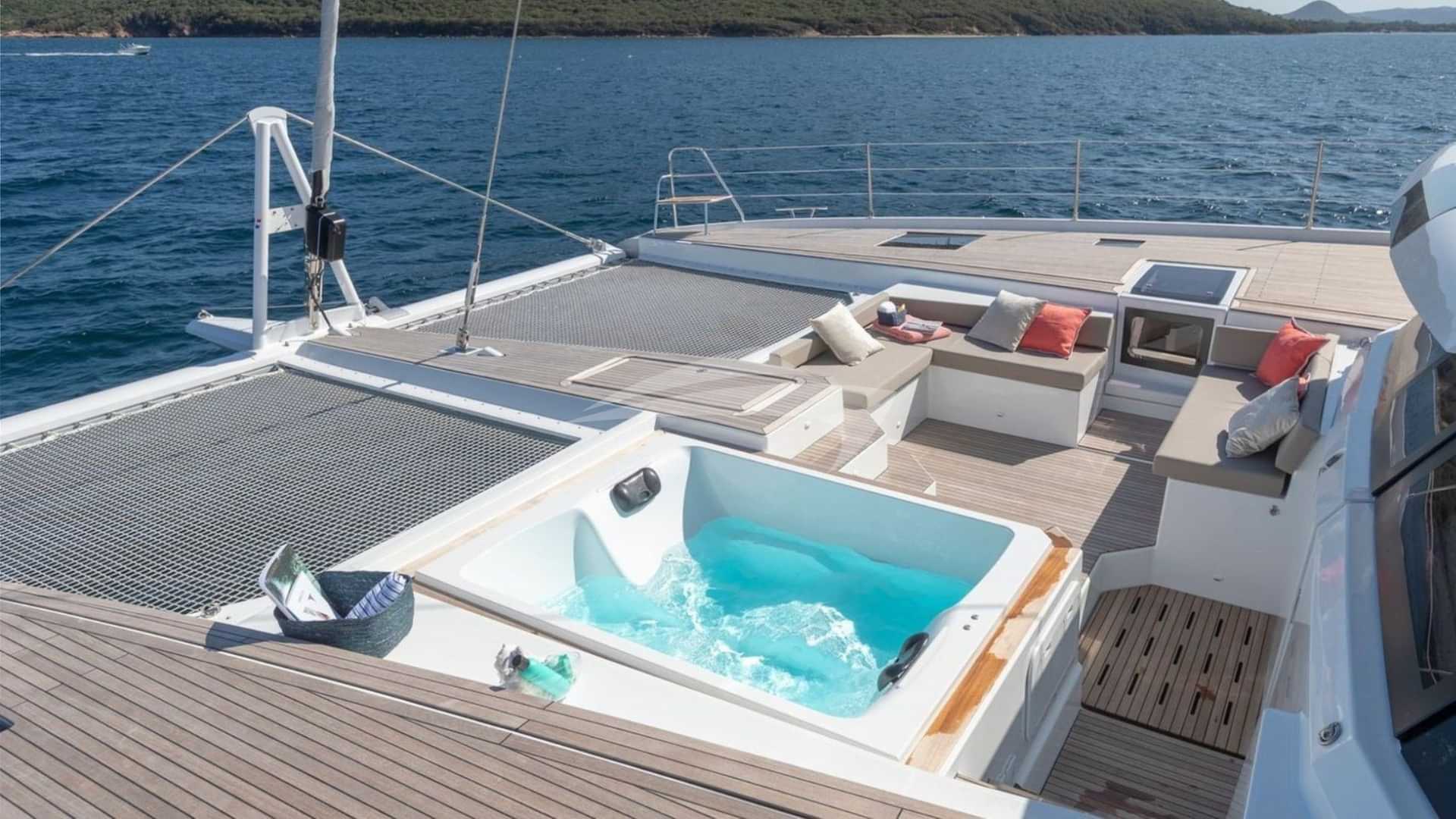 チャーターゲスト用の機内設備には、デッキ上のジャグジーがあります。
