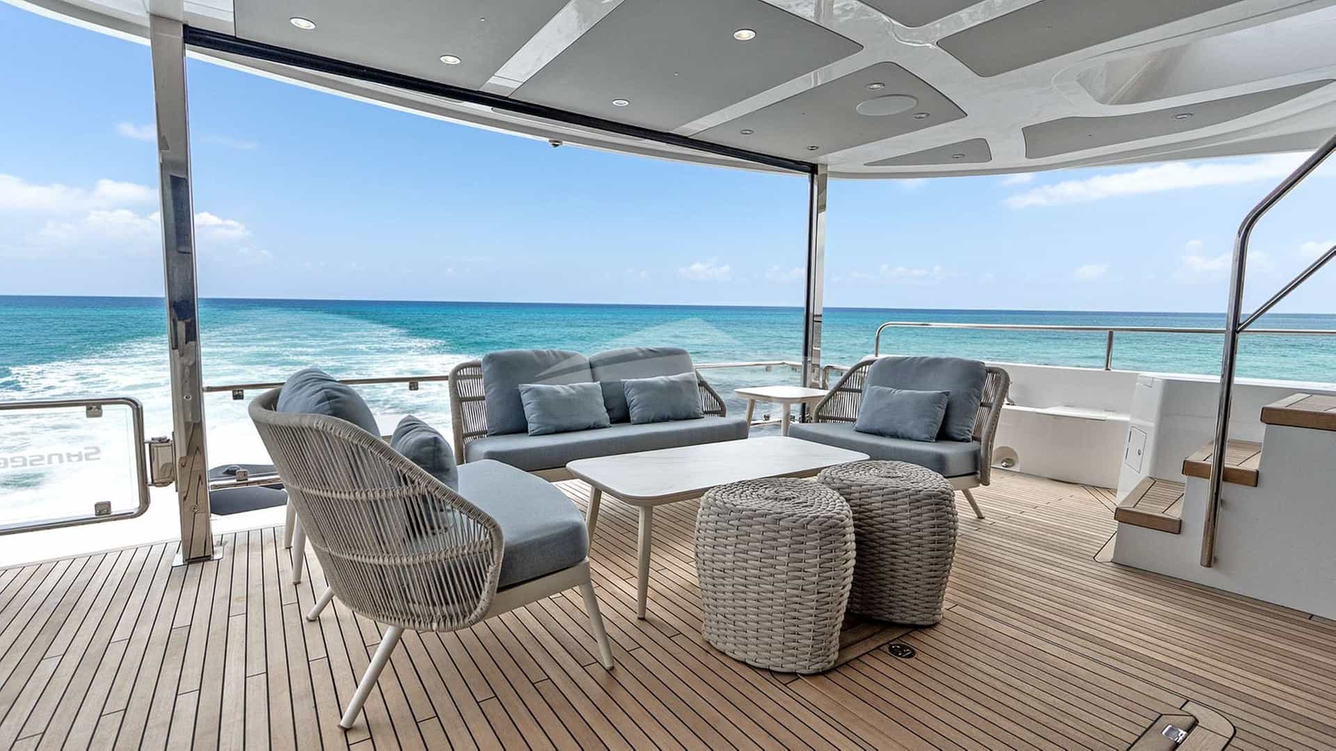 チャーターゲスト用の機内アメニティには、エアコン、バーベキュー、屋外シャワー、屋内オーディオシステム、衛星テレビ、スタビライザーアットアンカー、スイムプラットフォーム、テレビサルーン、Wi-Fiが含まれます。