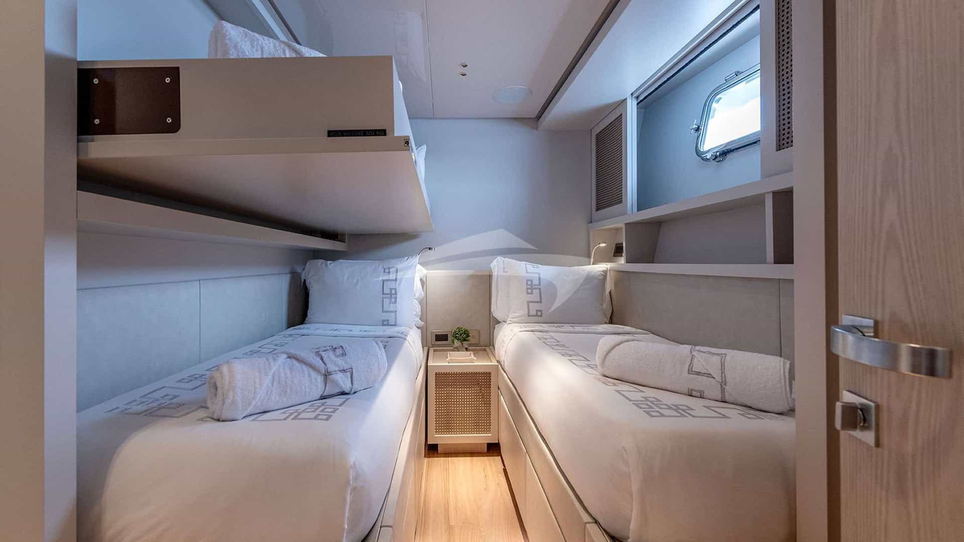 ゲストキャビンは、キングサイズベッド付きのプライマリースイート、キングサイズベッドとプルマンベッド付きのキャビン、ダブルベッド付きの2つのキャビン、シングルベッド付きの4つのキャビンで構成されています。
