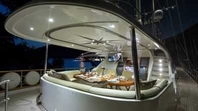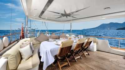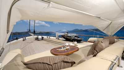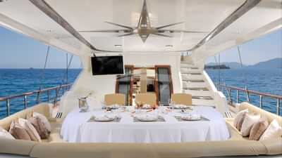 チャーターゲスト用の機内アメニティには、エアコン、前甲板座席、デッキのジャグジー、Wi-Fiなどがあります。