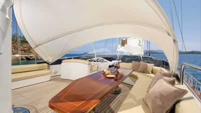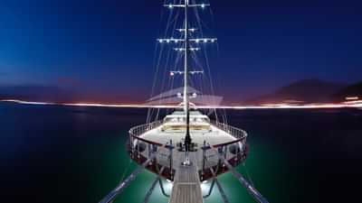 セーリングヨットALESSANDRO Iに搭載された豪華チャーターは、船長を含む6人の乗組員によって管理されます。