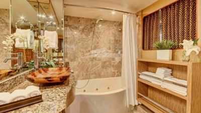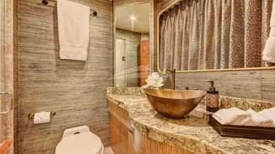 ゲストキャビンには、キングサイズベッド1台、専用バスルーム付きのプライマリスイート、キングサイズベッド1台、専用バスルーム付きのキャビン、クイーンサイズベッドと専用バスルーム付きのキャビン2室があります。