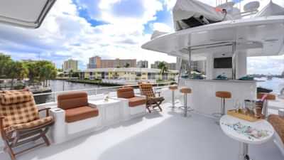 チャーターゲスト用の船内のアメニティには、エアコン、軽釣具、デッキのジャグジー、スタビライザー、Wi-Fiが含まれます。