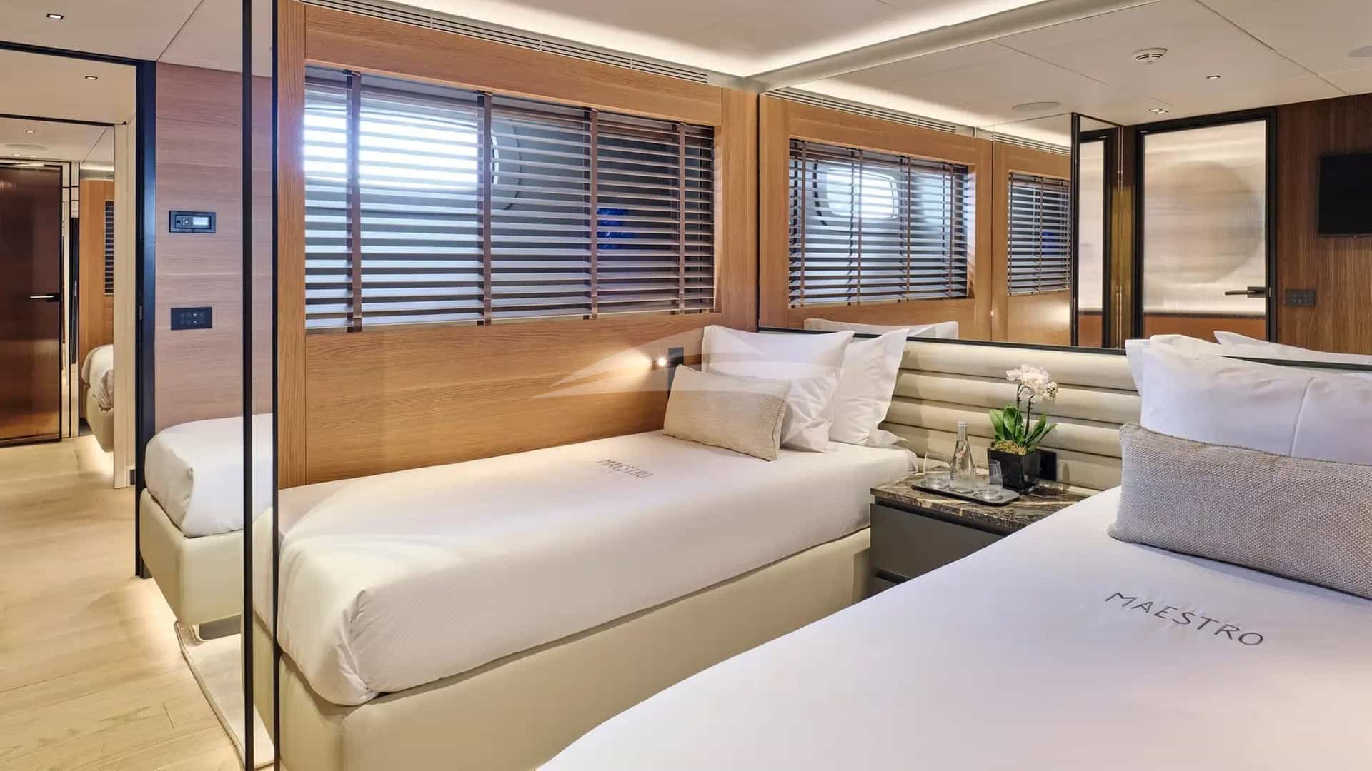 MAESTROは、5つのスイートに最大11人のチャーターゲストを快適に収容できるように設計されています。