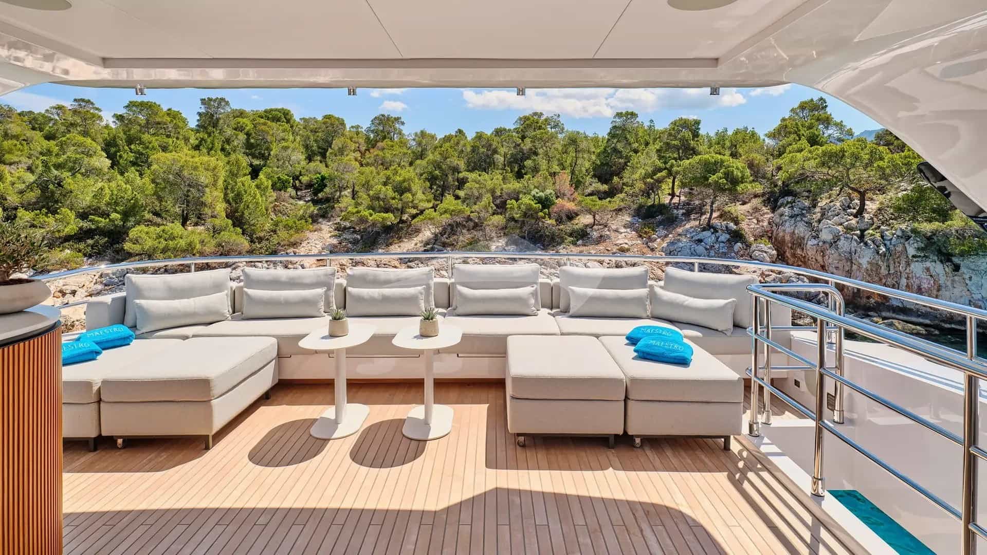モーターヨットMAESTROでの豪華チャーターは、船長を含む9人の乗組員が管理します。