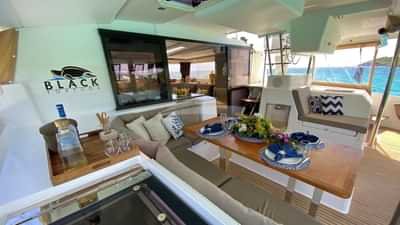 BLACK TORTUGAは、クイーンサイズベッド1台と専用バスルーム付きのプライマリスイートと、クイーンサイズベッド1台と専用バスルーム付きの3つのキャビンからなる4つのキャビンに8名まで宿泊できます。