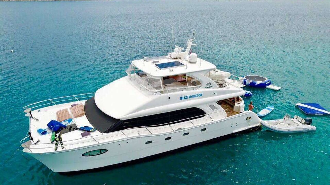モーターヨットBLUE HORIZONに乗っている豪華チャーターは、船長を含む2人の乗組員によって管理されます。