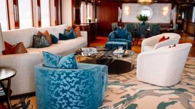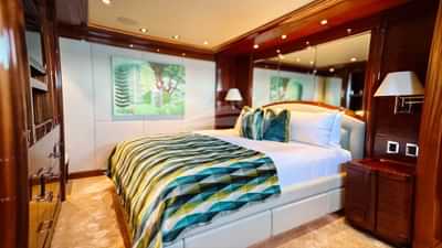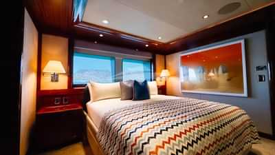 ゲストキャビンには、キングサイズベッド1台、専用バスルーム付きのプライマリスイート、キングサイズベッド1台、専用バスルーム付きのVIPスイート、ダブルベッドと専用バスルーム付きのキャビン2つ、ツインベッドと専用バスルーム付きのキャビン2台で構成されています。
