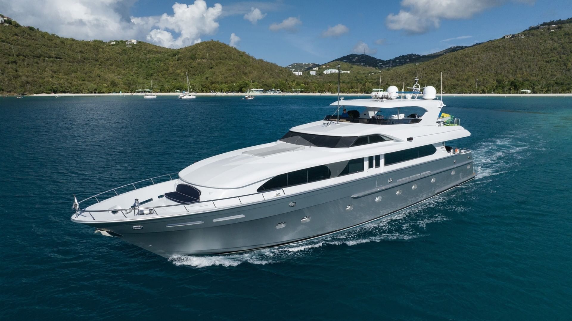 モーターヨット「OUTTA TOUCH」での豪華チャーターは、船長を含む5人のクルーが管理します。