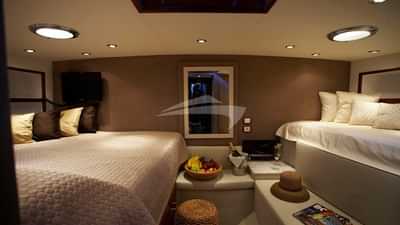 EFIは、ダブルベッドと専用バスルーム付きのキャビン2つ、ダブルベッドと専用バスルーム付きのキャビン、ダブルベッド1台、シングルベッド、専用バスルーム付きのプライマリスイートからなる4つのキャビンで9名様を収容できます。