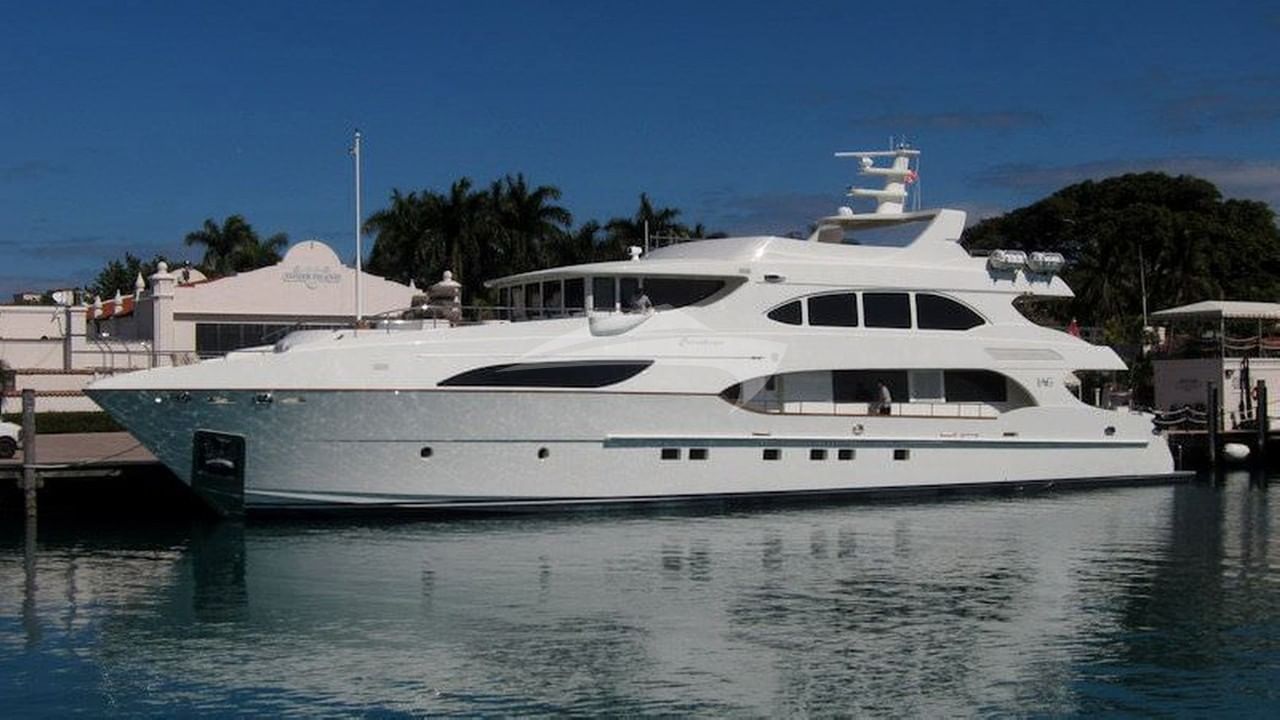 As comodidades a bordo incluem ar condicionado, churrasqueira, chuveiro externo, sistema de áudio interno, dock para iPod, jacuzzi no convés, TV via satélite, sala de TV e Wi-Fi.