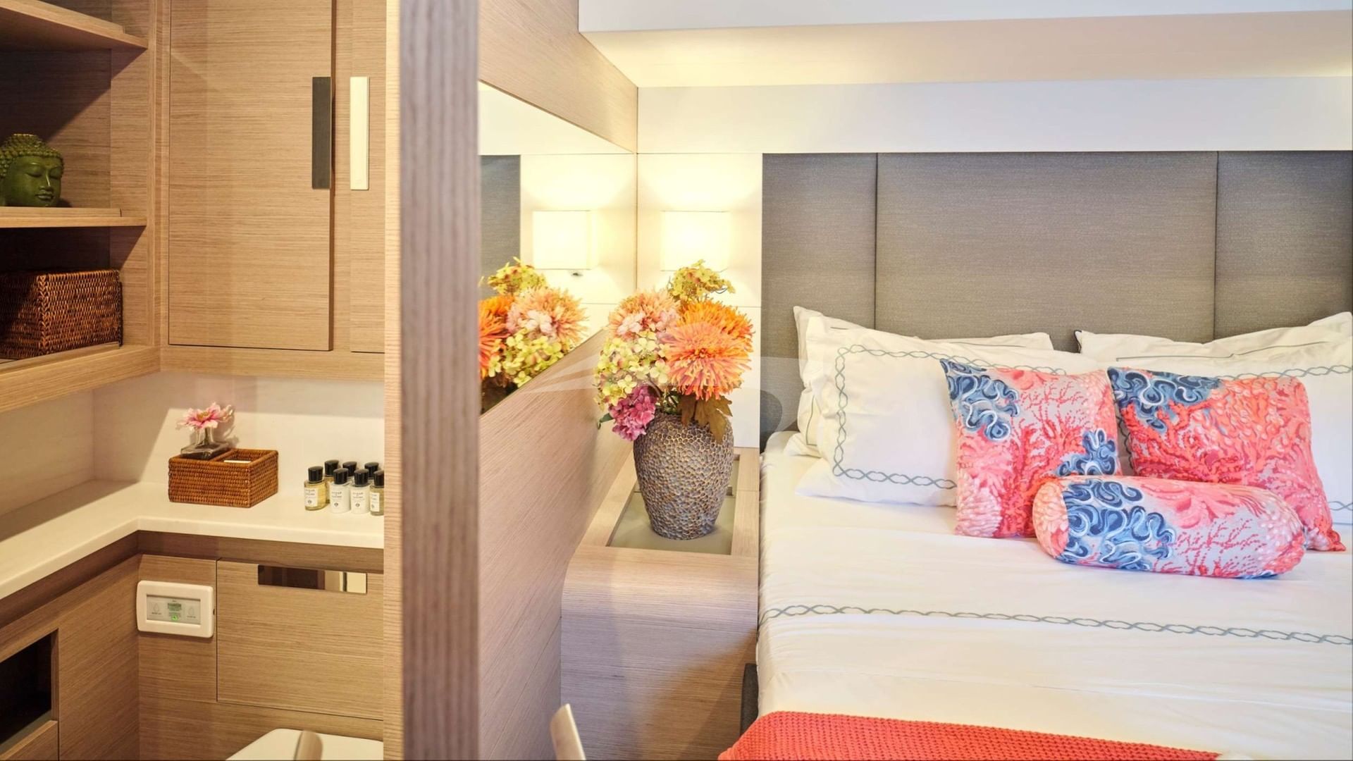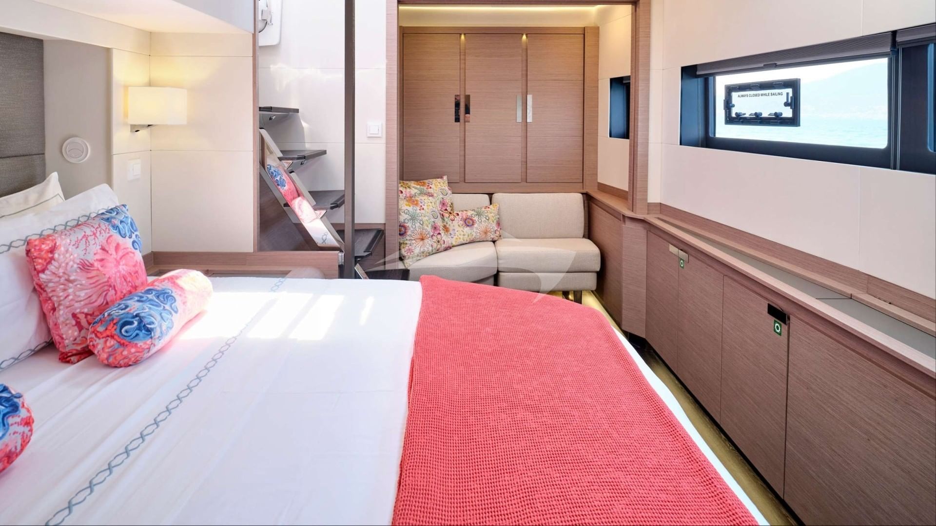 KIMATA pode acomodar 8 hóspedes dormindo a bordo em 4 cabines.