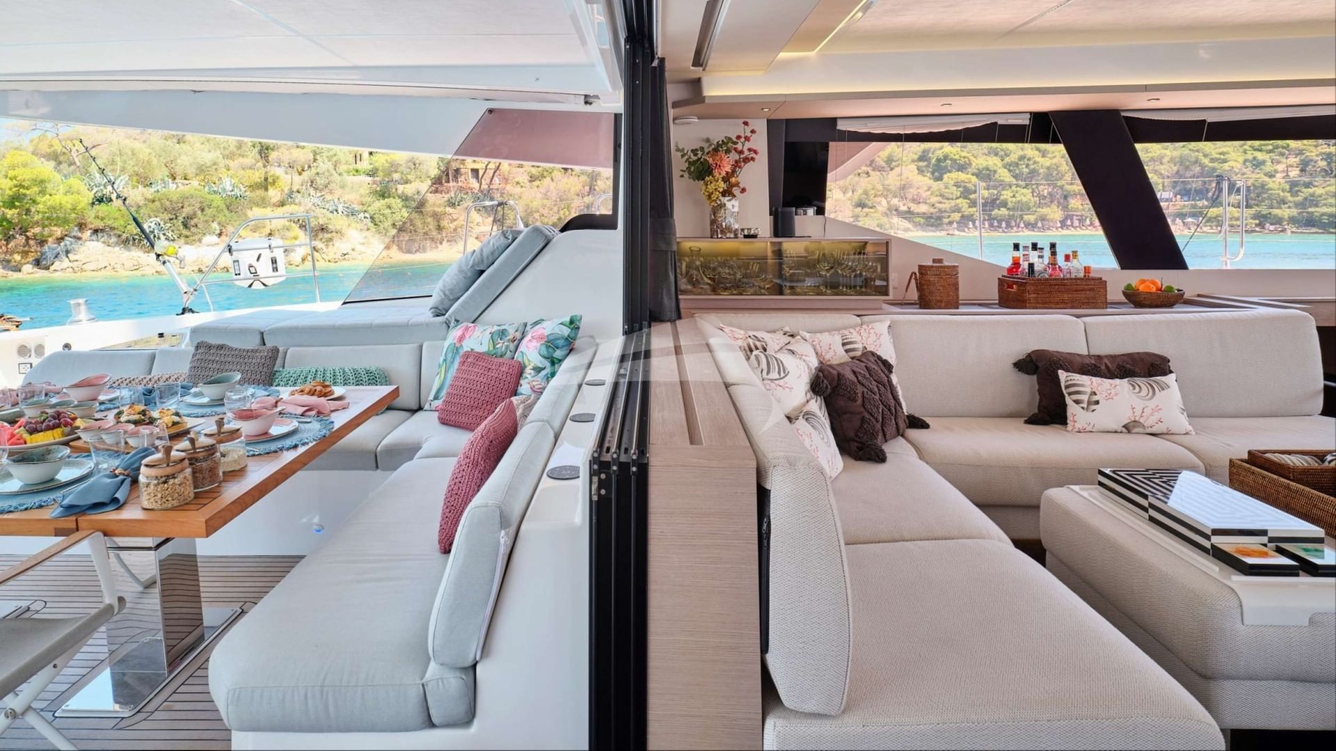 O iate à vela de luxo KIMATA foi construído pela Fountaine Pajot e entregue ao seu dono em 2021.