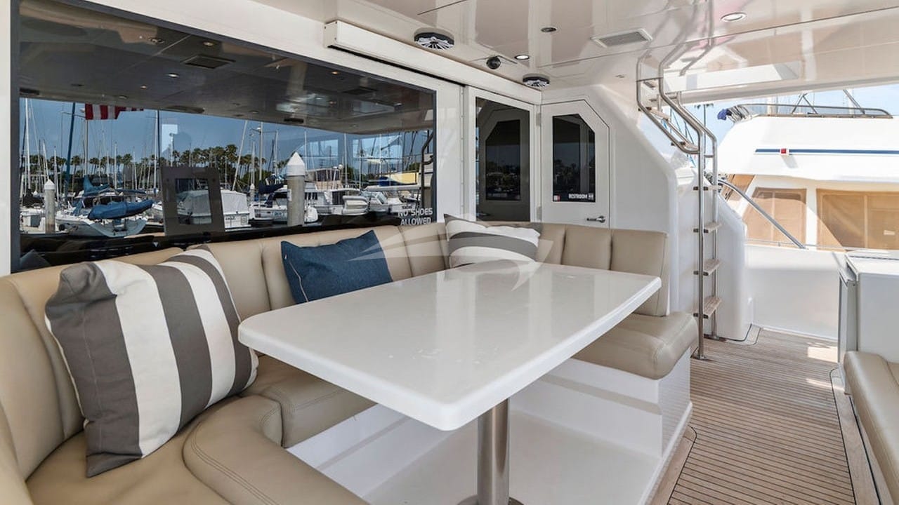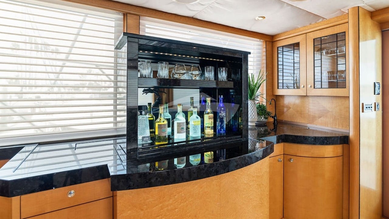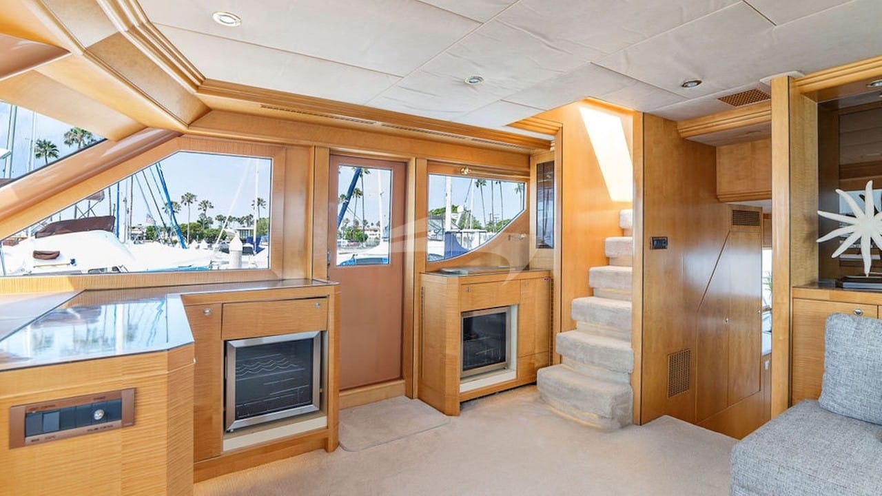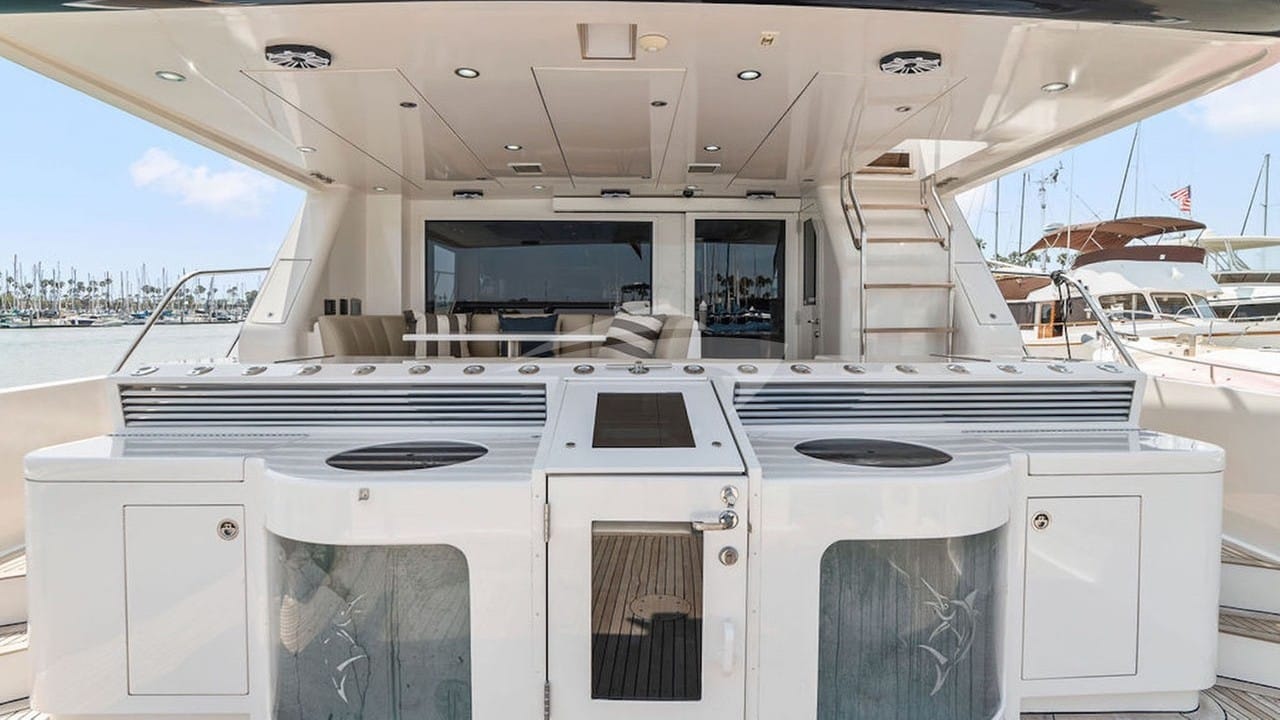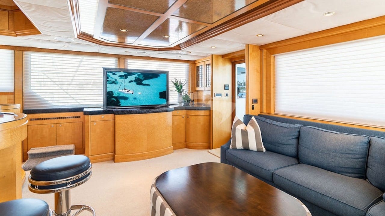 As comodidades a bordo para os hóspedes charter incluem ar-condicionado, churrasqueira, cafeteira, equipamento de pesca esportiva, equipamento de pesca leve, máquina de fazer gelo, sistema de áudio interno, sistema de áudio externo, comunicações via satélite, TV via satélite e estabilizadores.