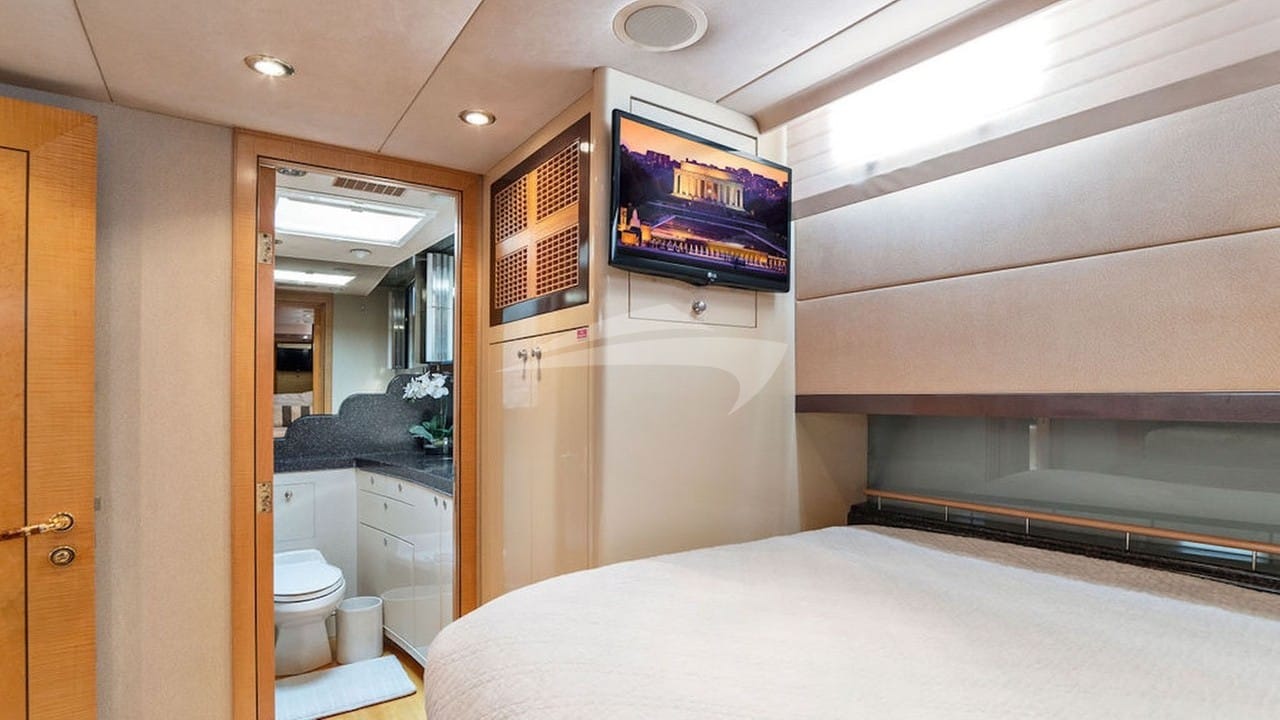 As cabines de hóspedes incluem uma suíte primária com uma cama king size e casa de banho privativa, uma suíte VIP com uma cama queen size e banheiro privativo e uma cabine com cama de casal e banheiro privativo.