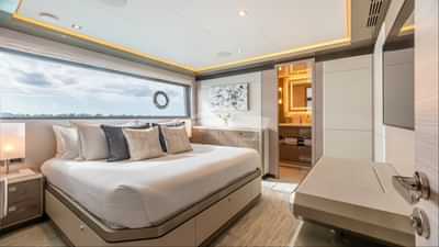 As cabines de hóspedes incluem uma suíte principal com cama king size e banheiro privativo, 2 suítes VIP com cama king size e banheiro privativo e 2 cabines com cama de solteiro e banheiro privativo.