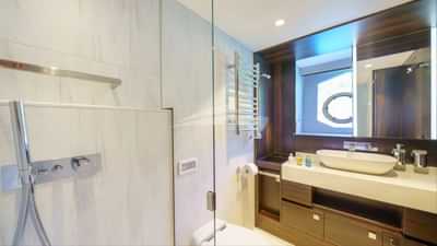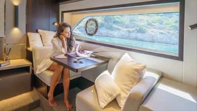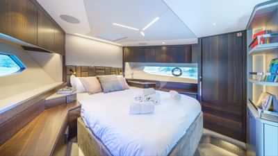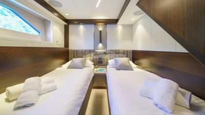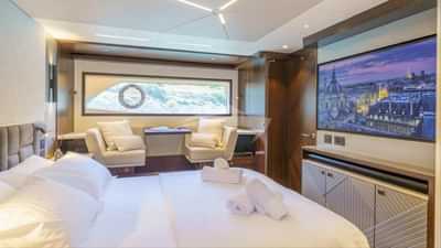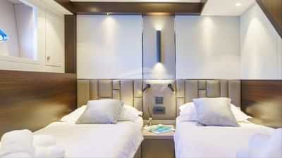 O APOLLO pode acomodar 8 pessoas em 4 cabines, consistindo em uma suíte principal com cama king size e banheiro privativo, uma suíte VIP com cama king size e banheiro privativo e 2 cabines com cama de solteiro e banheiro privativo.