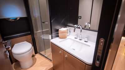 Os 3 tripulantes têm seus próprios quartos de tripulação separados, permitindo que os hóspedes desfrutem de níveis aumentados de privacidade.