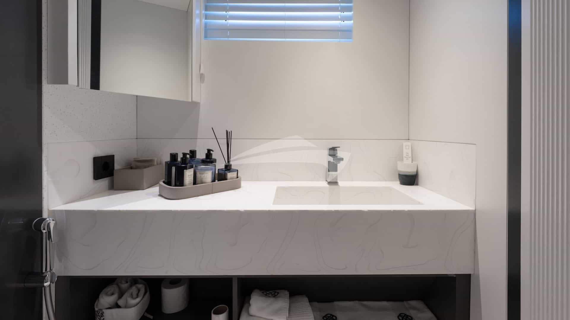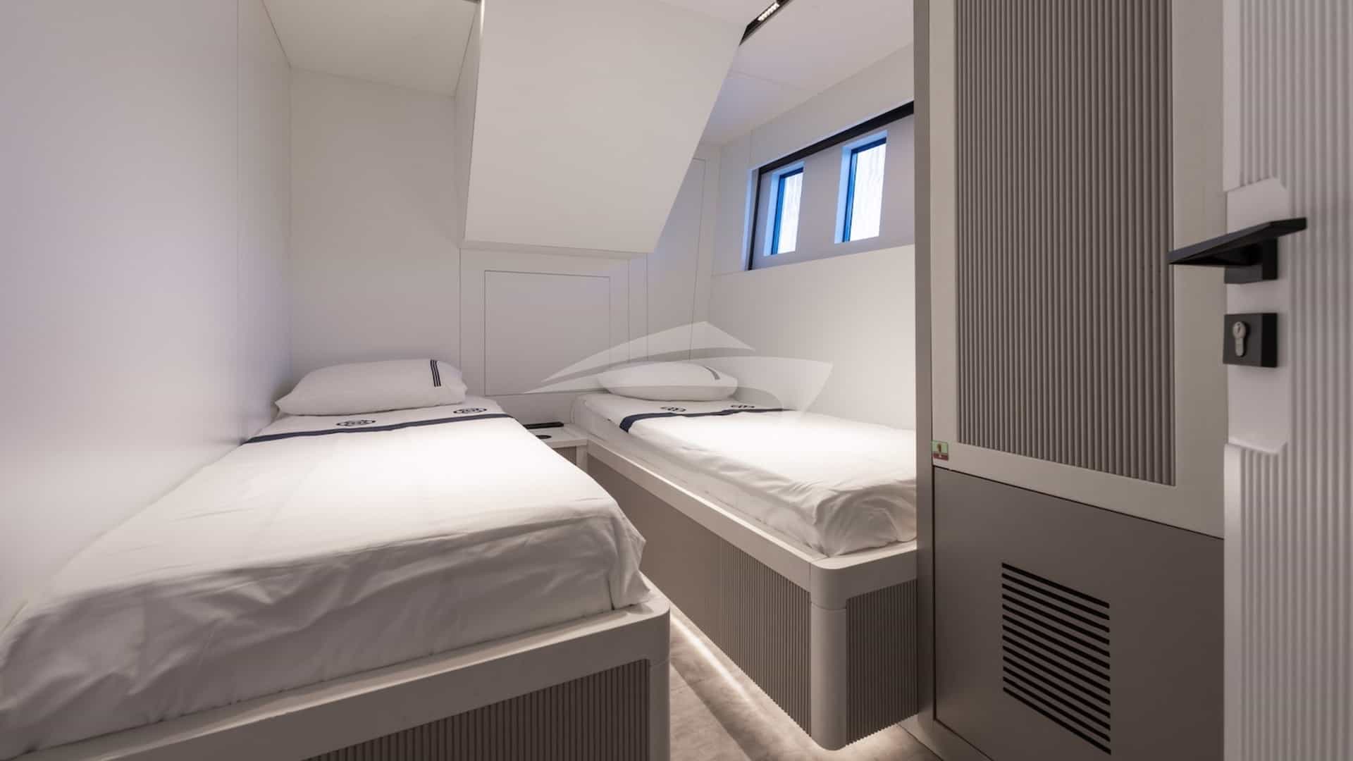 As cabines de hóspedes compreendem uma suíte principal com cama queen size e banheiro privativo localizado no andar inferior, uma suíte VIP com cama queen size e banheiro privativo, uma cabine com duas camas de solteiro e banheiro privativo e uma cabine com cama queen size e banheiro privativo.
