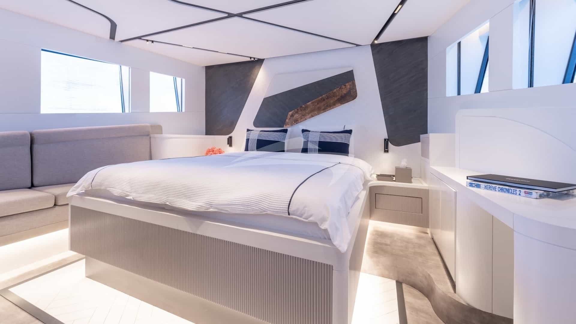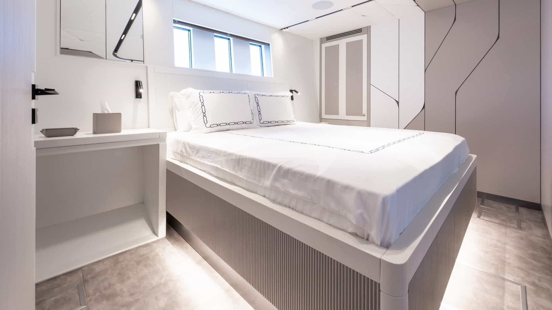 O FERRO 77 foi projetado para acomodar confortavelmente até 8 hóspedes charter em 4 suítes.