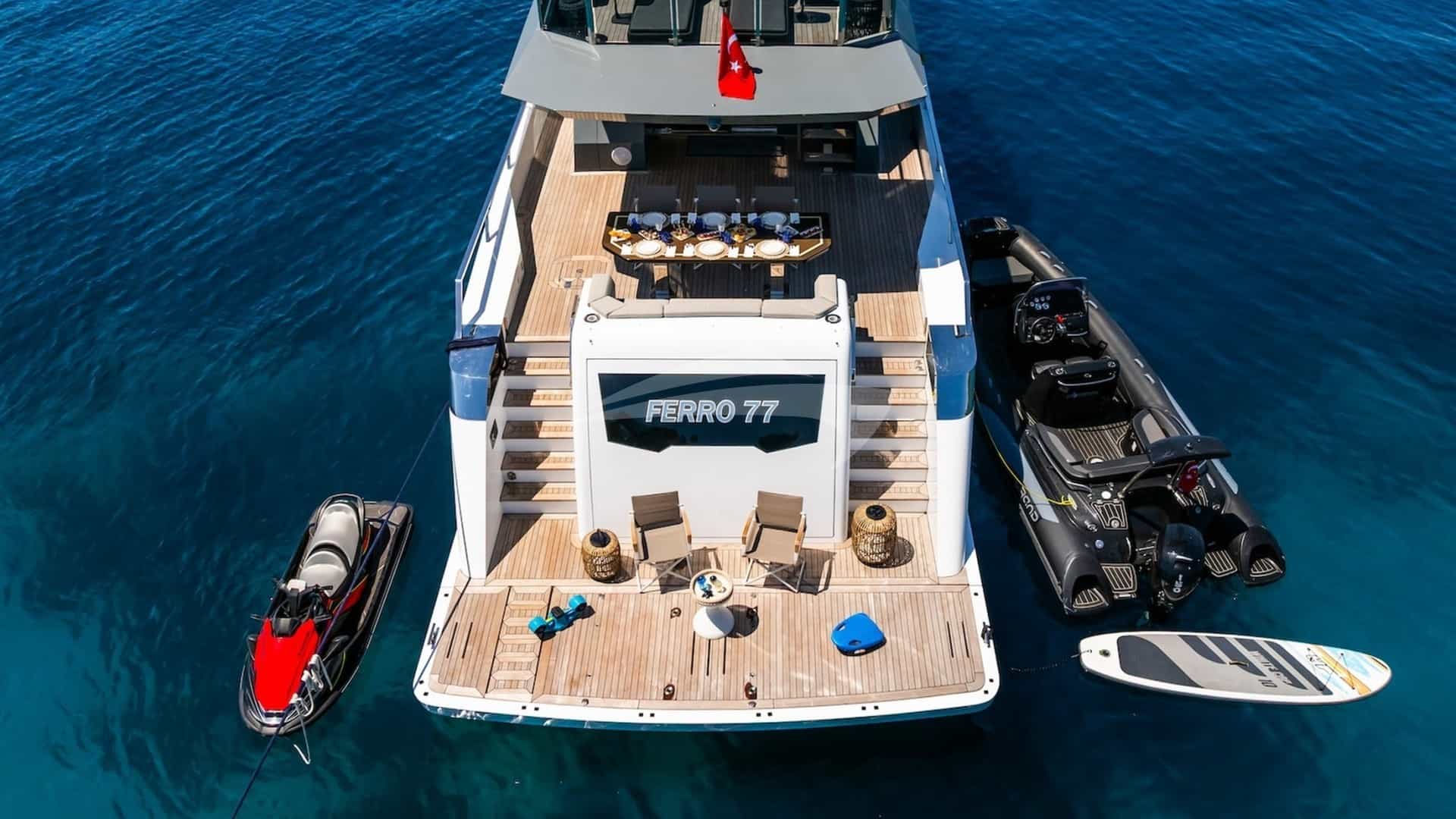Seu aluguel de luxo a bordo do iate a motor FERRO 77 será administrado pela tripulação de 5 pessoas, incluindo o capitão.
