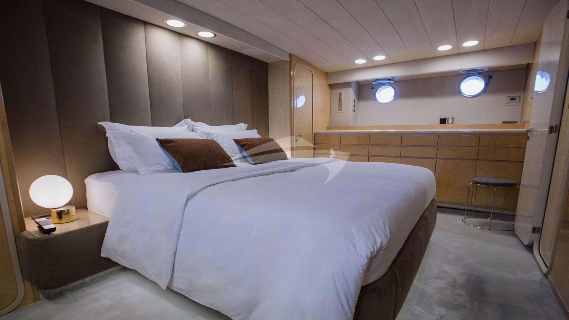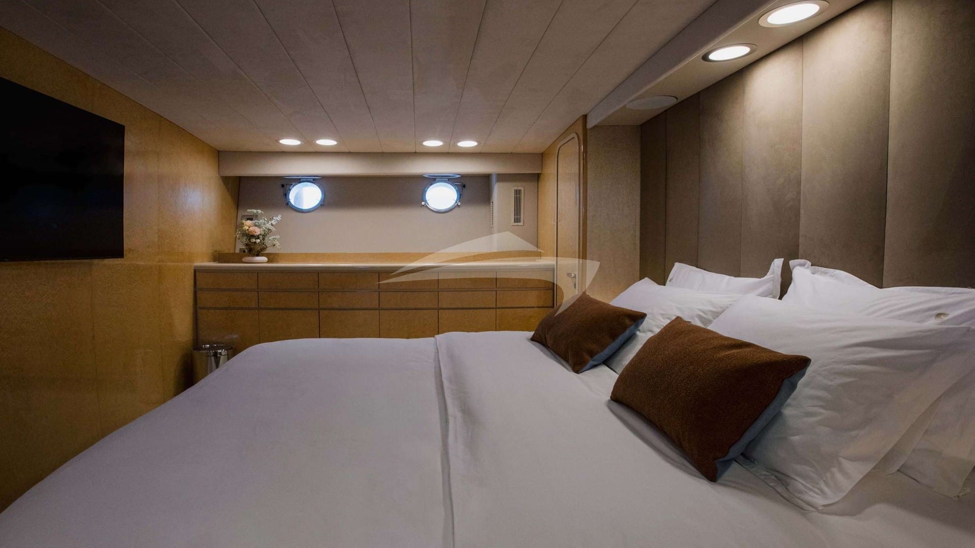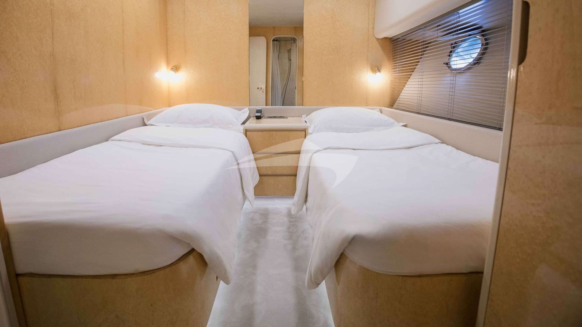 As cabines de hóspedes compreendem uma suíte principal com uma cama queen size e 4 cabines com uma cama de solteiro.