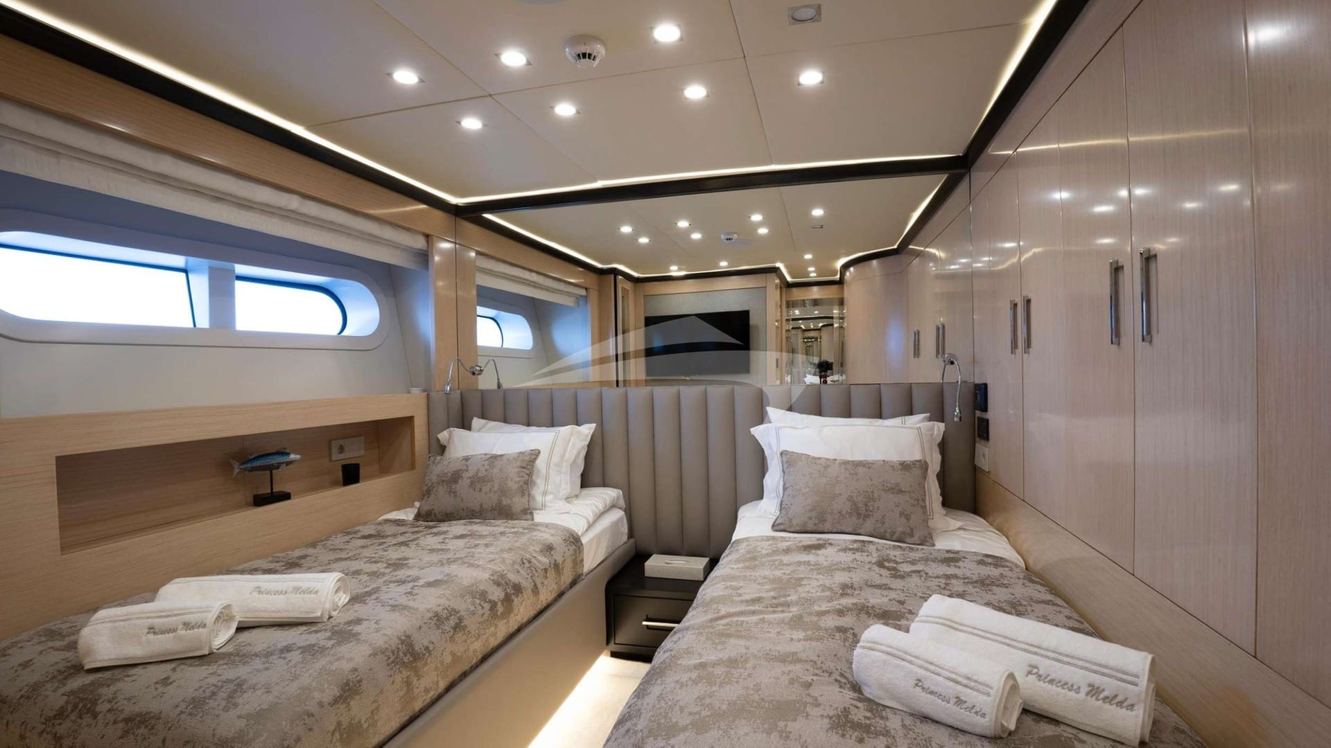 O PRINCESS MELDA foi projetado para acomodar confortavelmente até 12 hóspedes charter em 6 suítes.