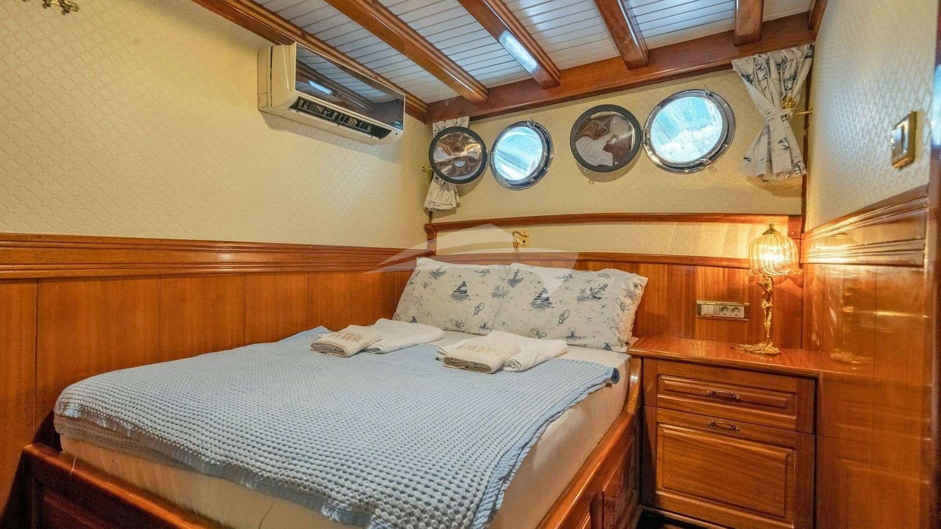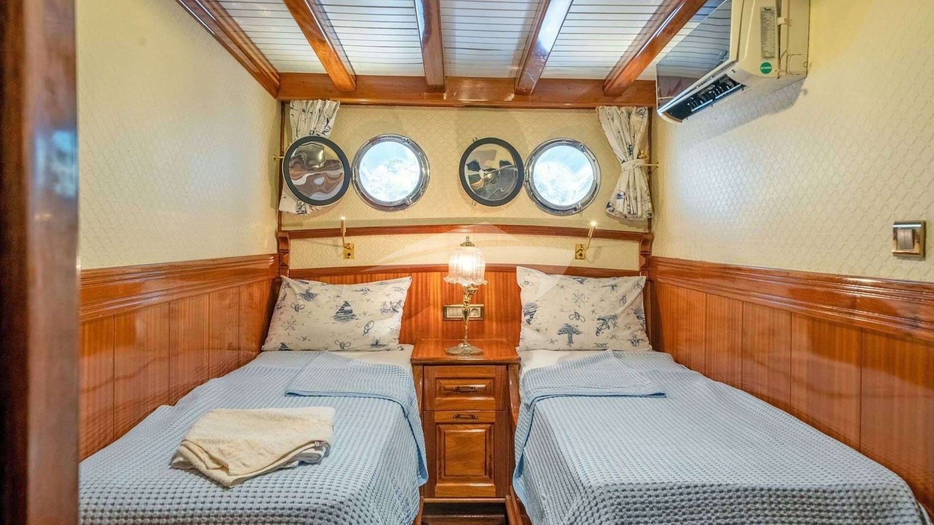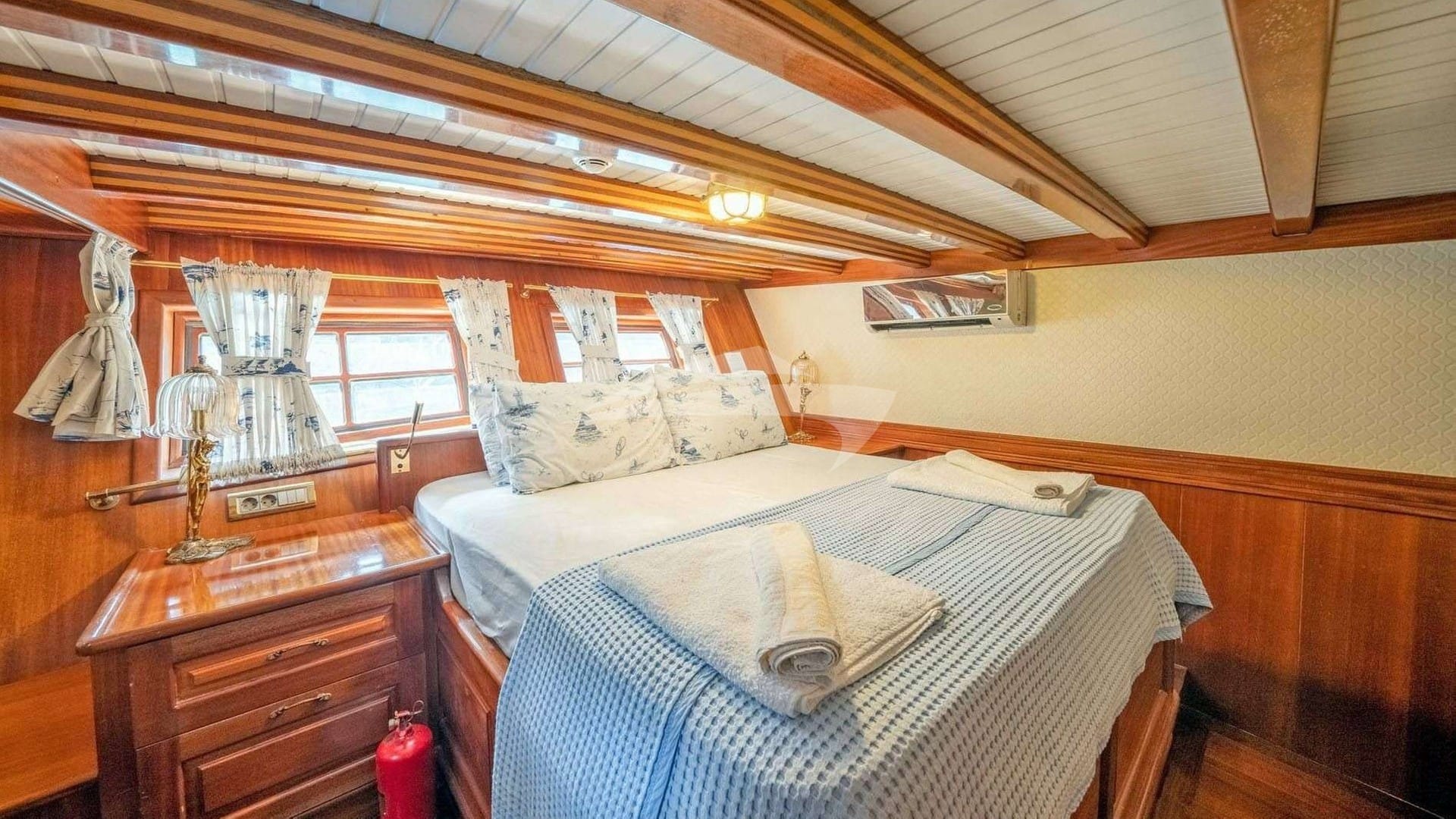 As cabines de hóspedes compreendem uma suíte principal com cama de casal e banheiro privativo, 9 cabines com cama de casal e banheiro privativo, 4 cabines com cama de casal e uma cama de solteiro e banheiro privativo e 2 cabines com cama de solteiro e banheiro privativo.