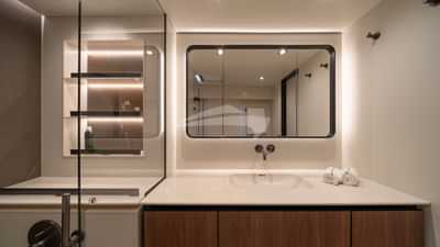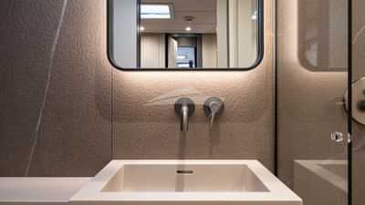 O AHALYA foi projetado para acomodar confortavelmente até 8 hóspedes charter em 4 suítes.