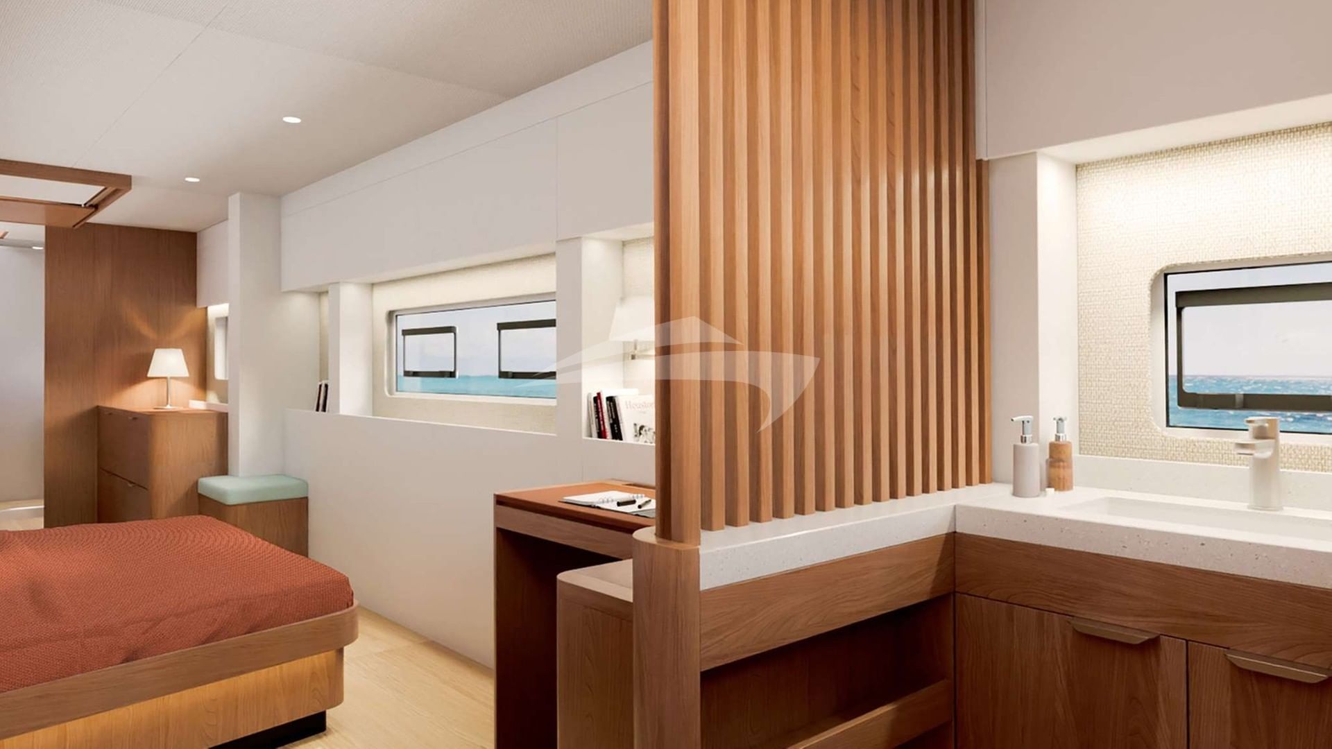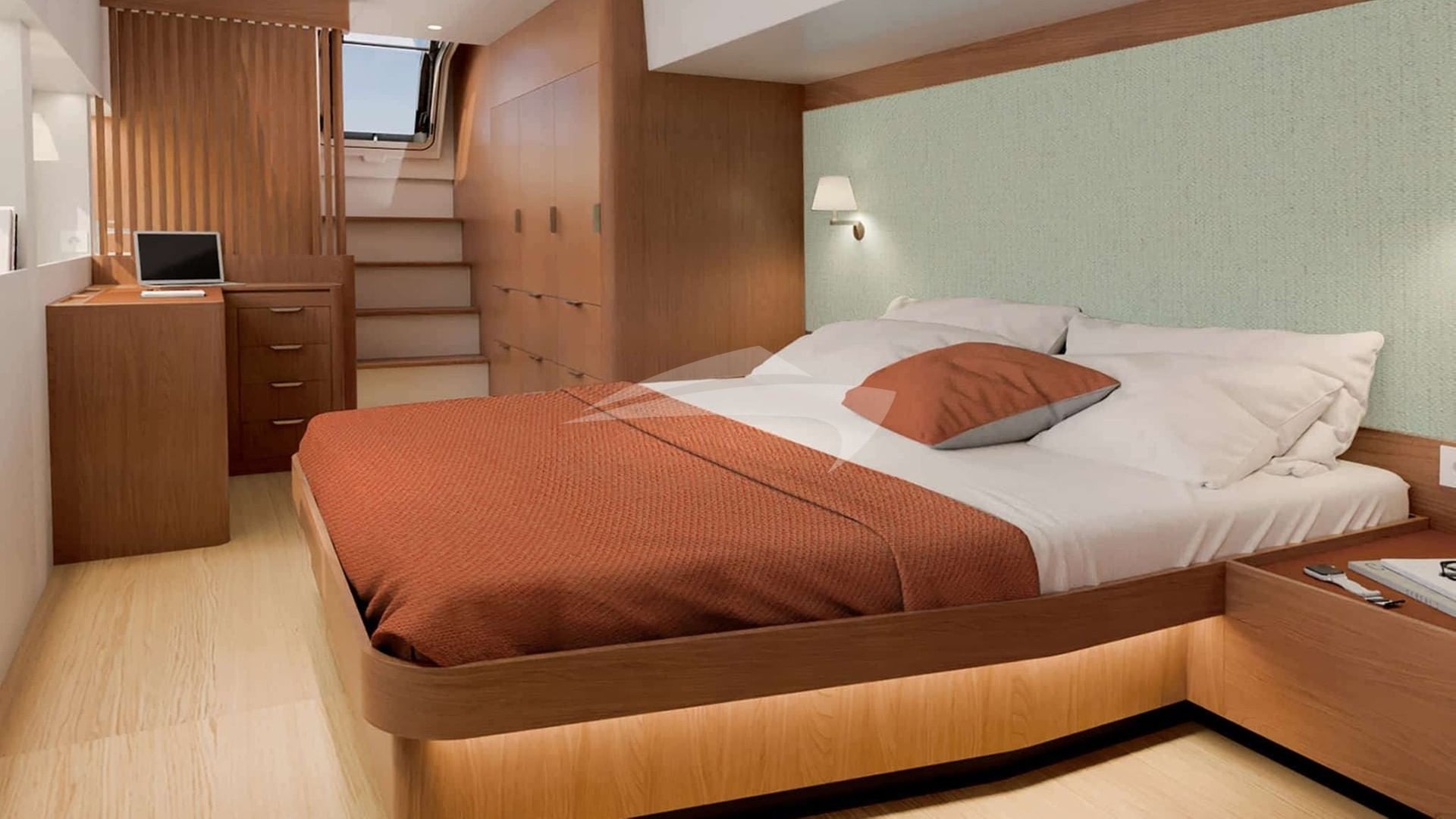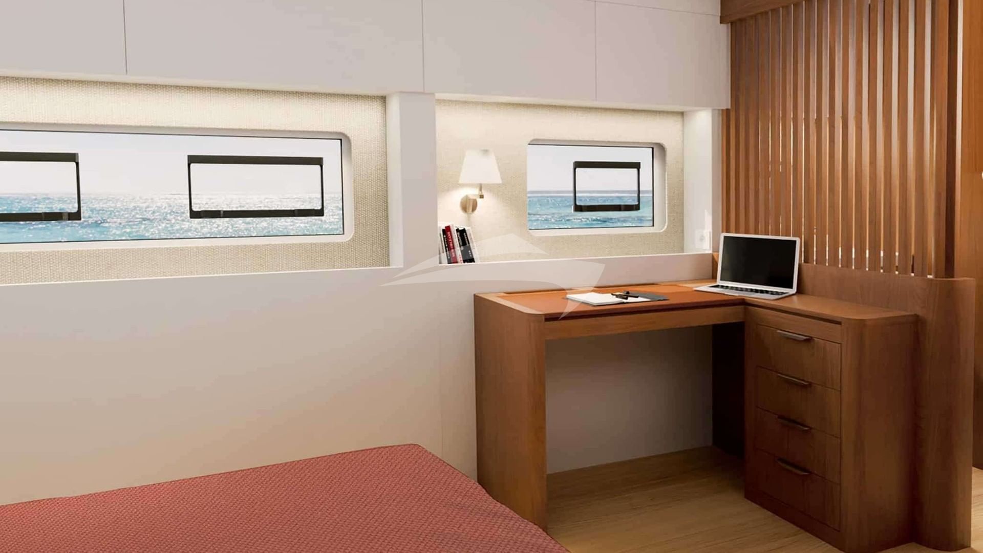 O NEW HORIZONS 4 foi projetado para acomodar confortavelmente até 8 hóspedes charter em 4 suítes.