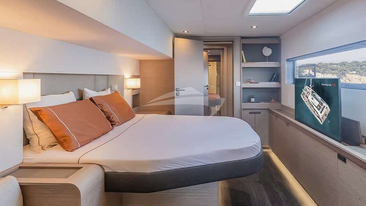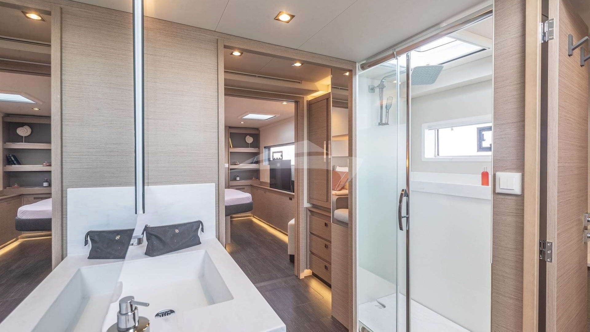 O NIKA ONE pode acomodar 8 pessoas em 4 cabines, consistindo em uma suíte principal com cama queen size e banheiro privativo e 3 cabines com cama queen size e banheiro privativo.