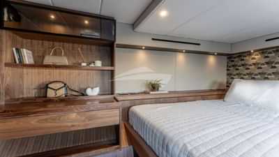 As cabines de hóspedes incluem uma suíte principal com cama de casal e banheiro privativo, 2 cabines com cama de casal e banheiro privativo e uma cabine com cama de solteiro e banheiro privativo.