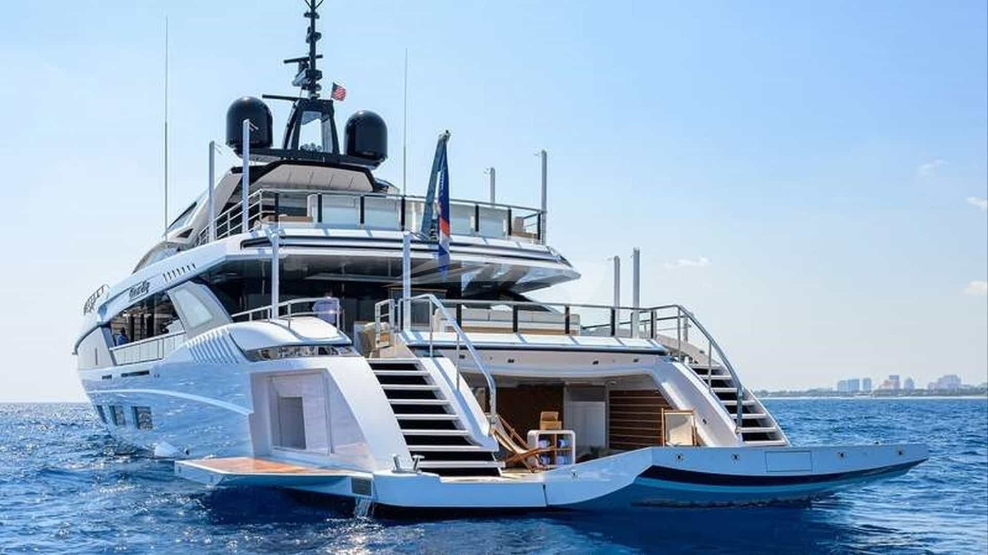 O luxuoso iate a motor GOLDENEYE foi construído pela Mangusta e entregue ao seu proprietário em 2020.