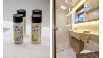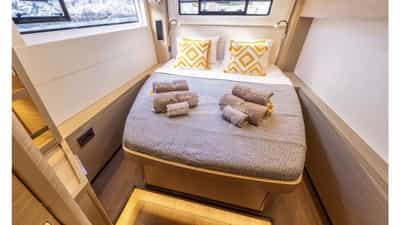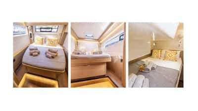 DOLCIA pode acomodar 10 hóspedes dormindo a bordo em 5 cabines.