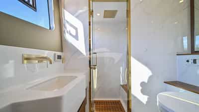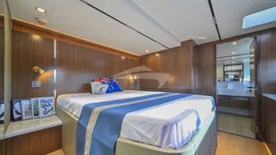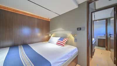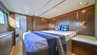 As cabines de hóspedes compreendem uma suíte principal com cama king size, uma cabine com cama king size e 3 cabines com cama de casal.