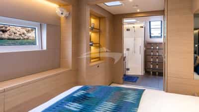 As cabines de hóspedes incluem uma suíte principal com uma cama king size e banheiro privativo, 2 cabines com cama queen size e banheiro privativo e 2 cabines com cama de solteiro e banheiro privativo.