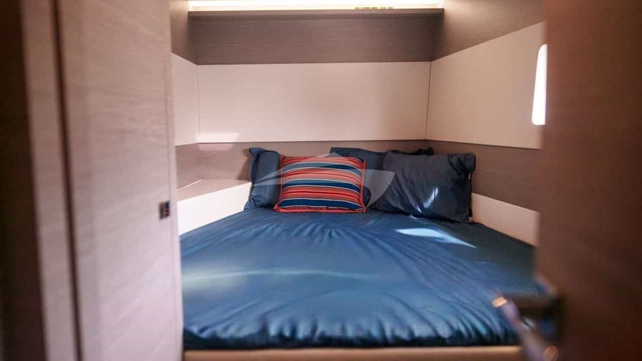As cabines de hóspedes incluem uma suíte principal com uma cama queen size e banheiro privativo e 2 cabines com cama queen size e banheiro privativo.