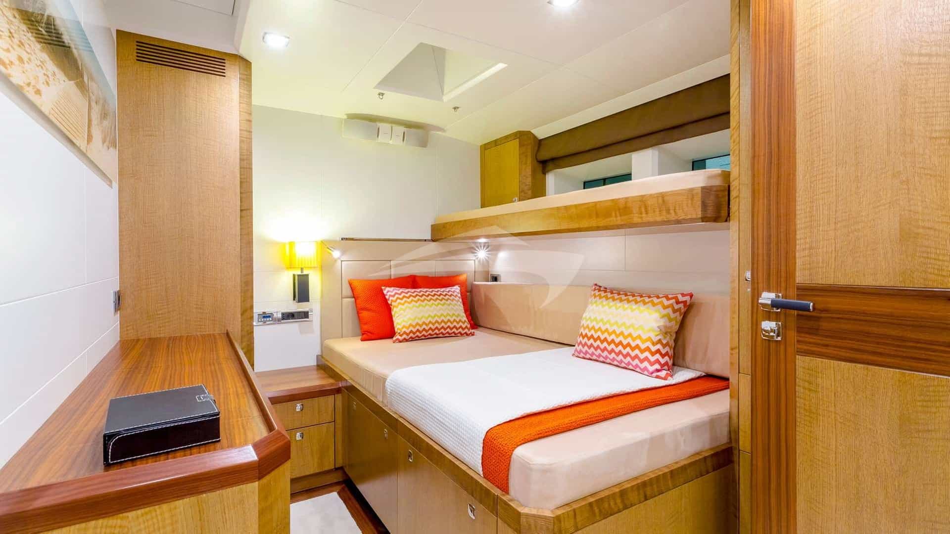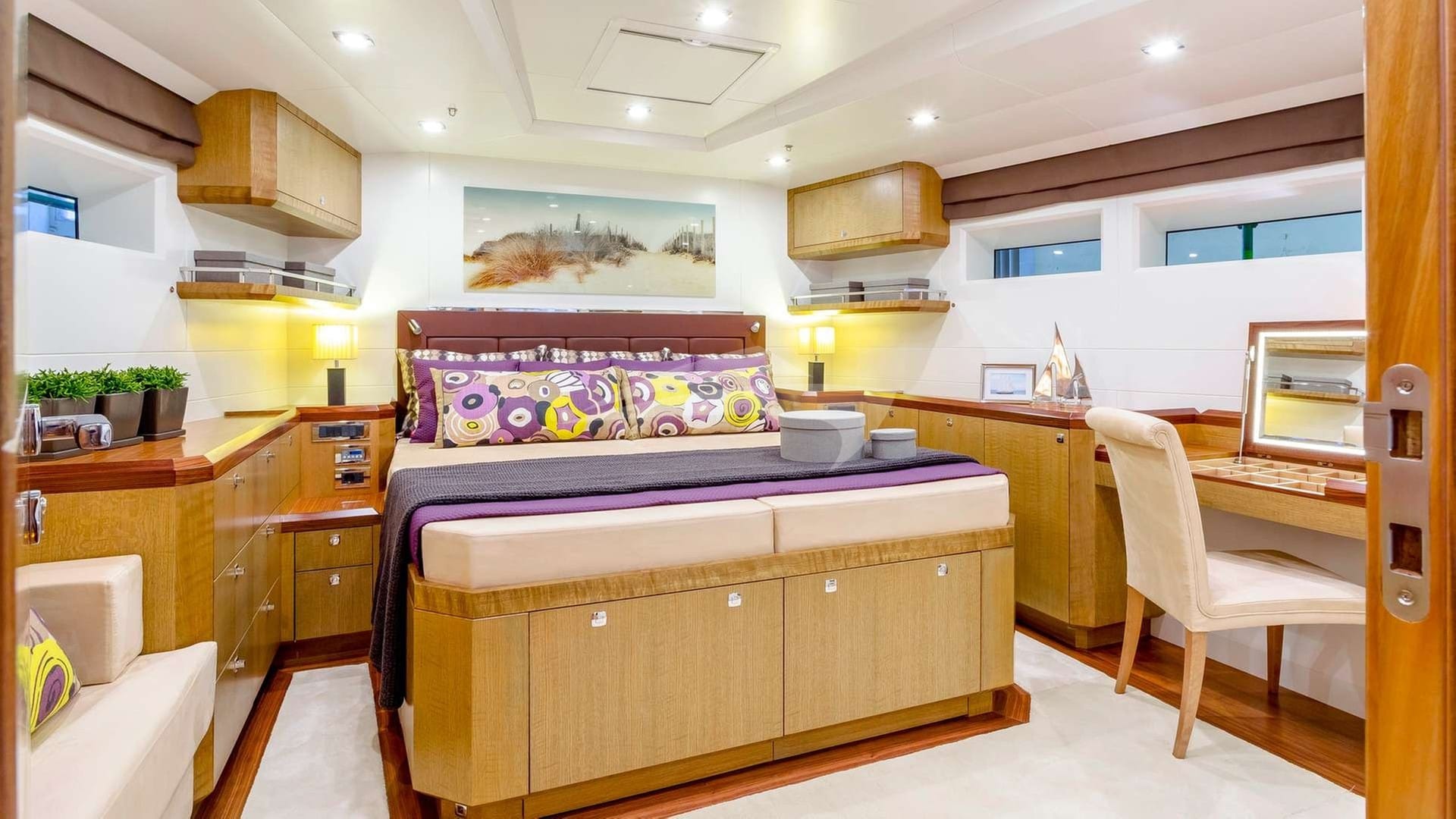 O BELLKARA foi projetado para acomodar confortavelmente até 6 hóspedes charter em 3 suítes.