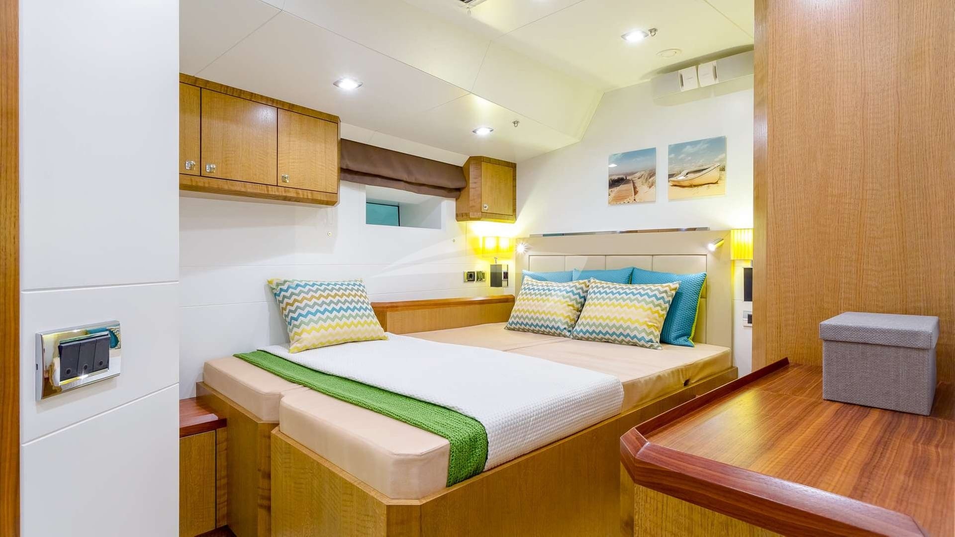 BELLKARA pode acomodar 6 hóspedes dormindo a bordo em 3 cabines.