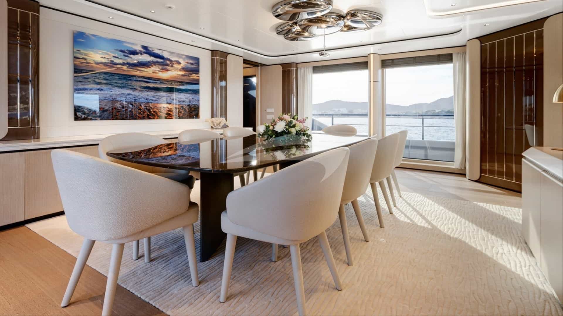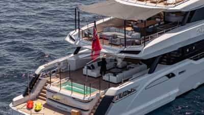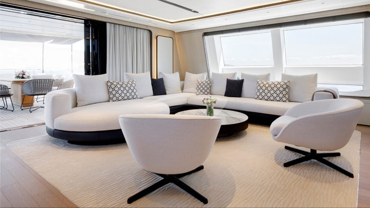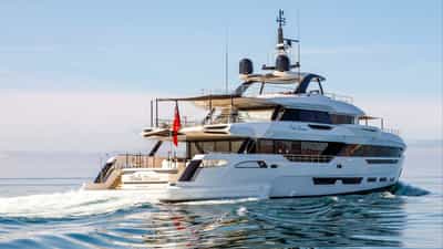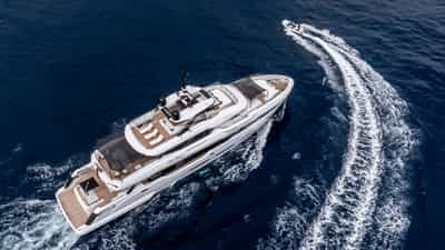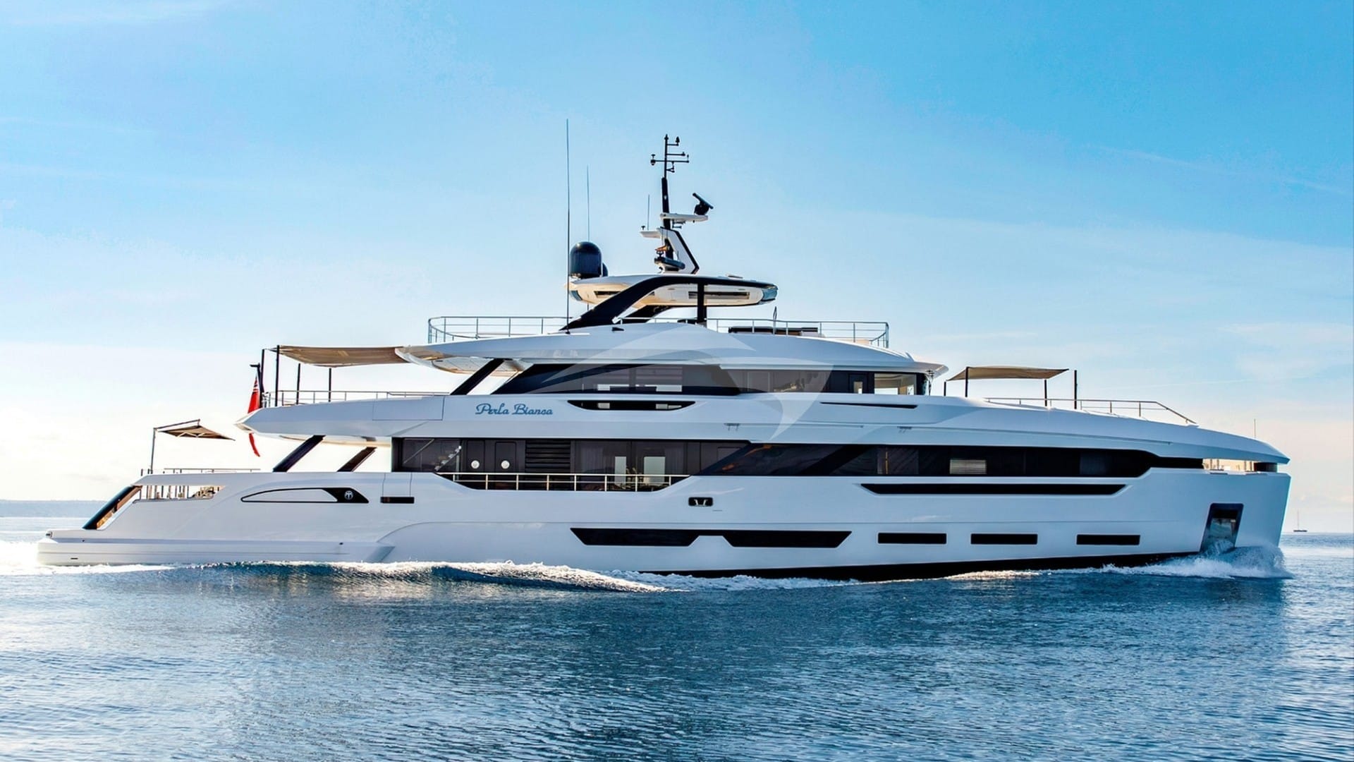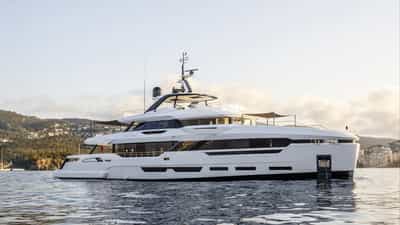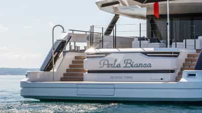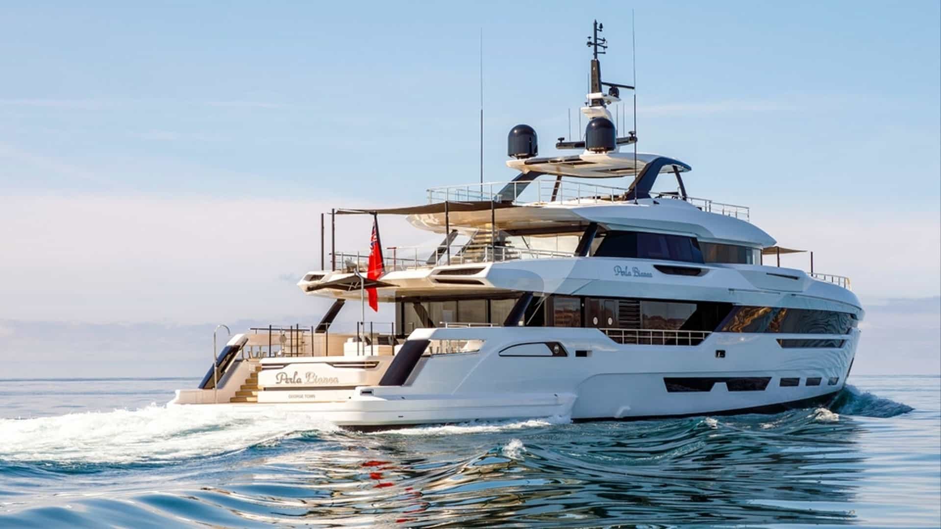 O luxuoso iate a motor PERLA BIANCA foi construído pela Baglietto e entregue ao seu proprietário em 2023.